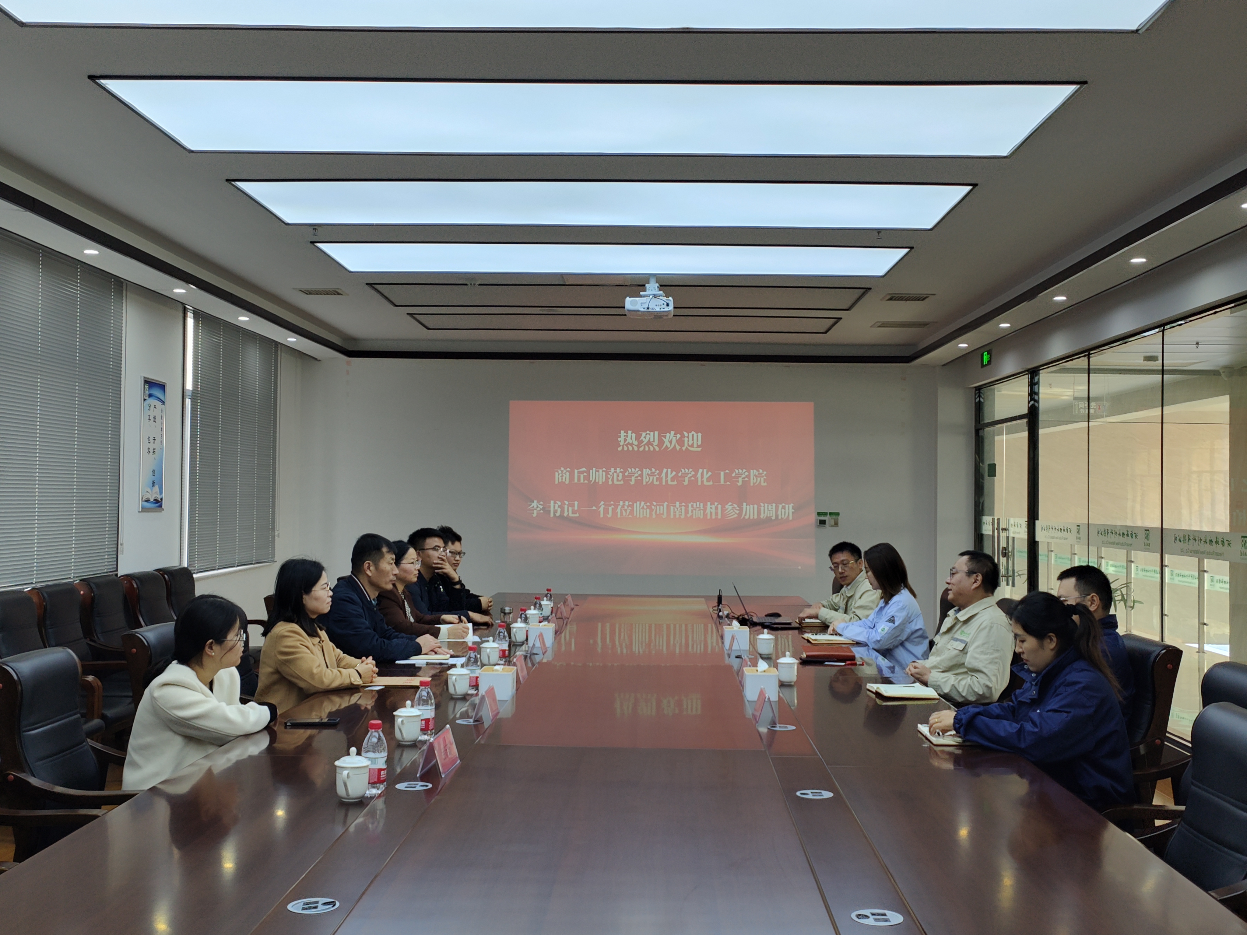 活动当天,公司党委书记李海涛带领师生代表来到了河南瑞柏新材料有限公司,受到了公司徐西东经理及各位领导的热情欢迎。座谈会上,双方领导就各自单位的情况进行了介绍,并在员工实习实训、毕业生就业、科研项目合作等方面展开深入交流。