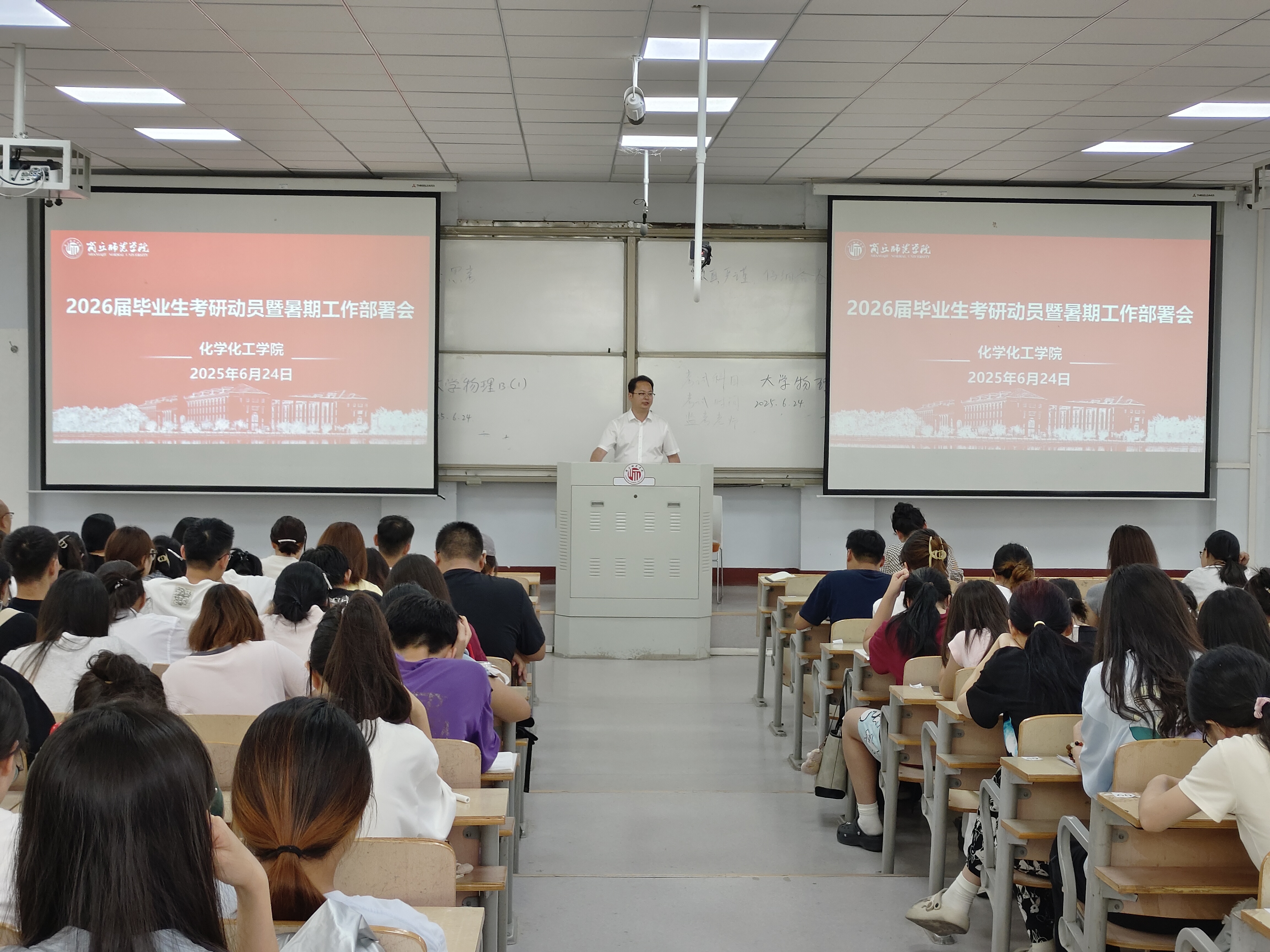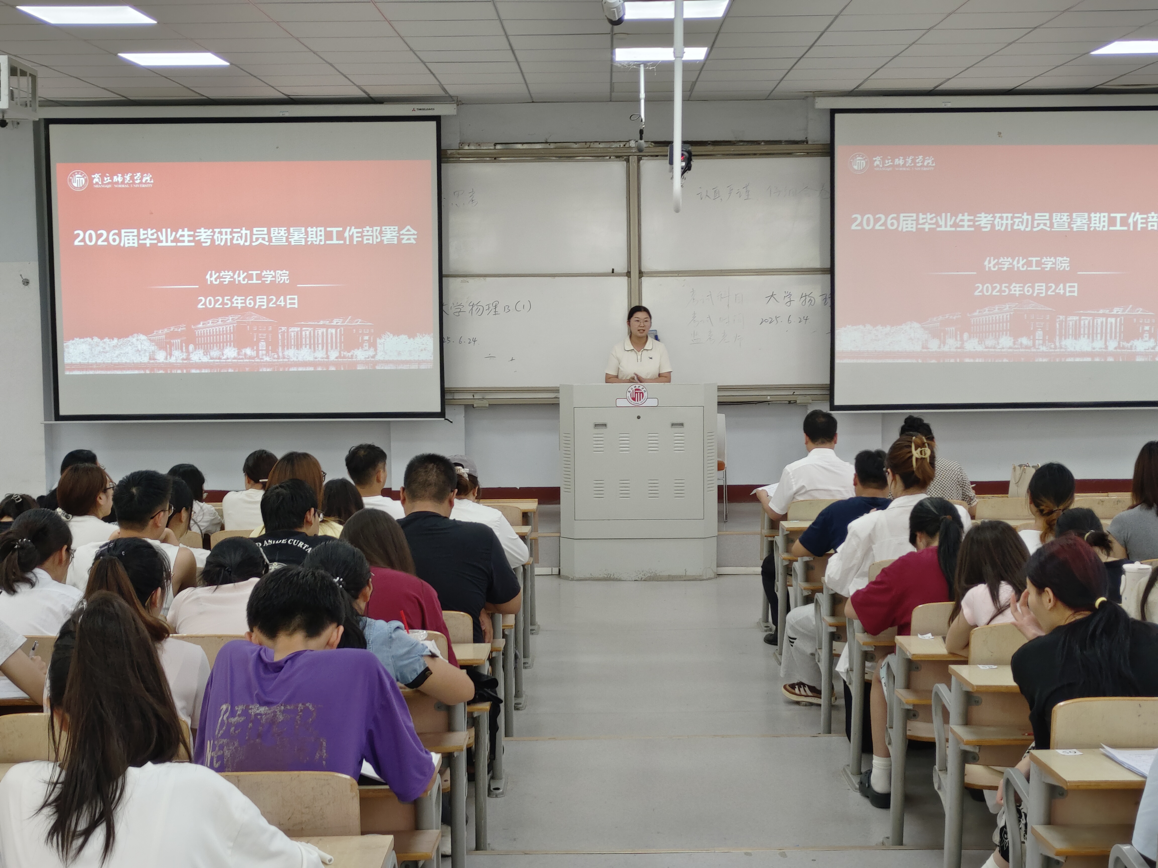为进一步增强员工考研信心,科学引导备考方向,统筹推进暑期员工工作,6月24日,英国365集团官网在1号教学楼106教室召开了2026届毕业生考研动员暨暑期工作部署会。公司党委副书记张颜梅、副经理王涛,2022级班主任辅导员及2026届全体本科生出席了会议。会议由22级化学专业辅导员王舒欣主持。