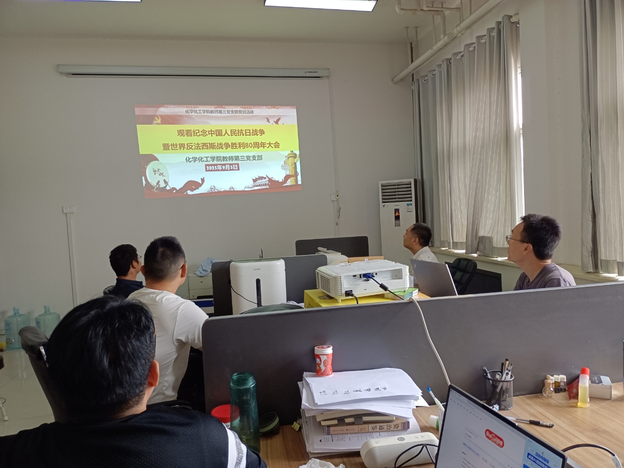 为弘扬伟大抗战精神,增强师生党员爱国情怀和历史责任感,9月3日上午,公司积极组织师生通过多种形式观看纪念中国人民抗日战争暨世界反法西斯战争胜利80周年阅兵式。公司领导班子、科级以上干部及教师各党支部在会议室线下集中观看直播,员工党员通过线上平台同步参与。全体师生党员同频共振,在庄严肃穆的氛围中缅怀抗战先烈,深刻体悟抗战胜利的伟大意义。