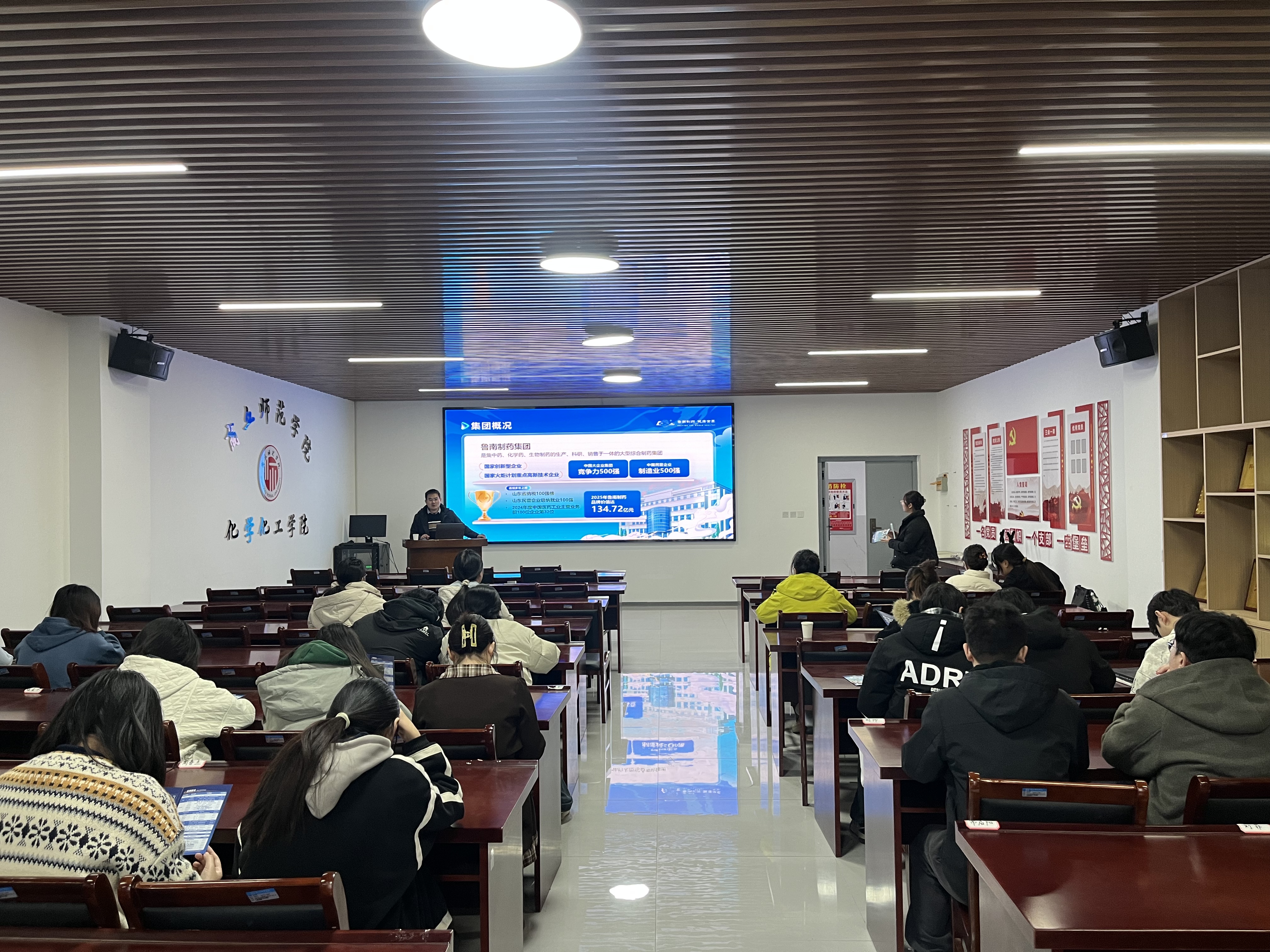 宣讲会上,两家医药企业分别从企业发展历程、核心产品布局、研发平台建设、岗位需求结构、职业晋升通道等方面进行系统介绍,重点讲解制药类相关岗位对专业能力、实践技能以及综合素质的具体要求。企业负责人鼓励员工提前规划职业生涯,提升科研思维、实验操作能力和数字化工具应用能力,为未来进入医药行业奠定坚实基础。