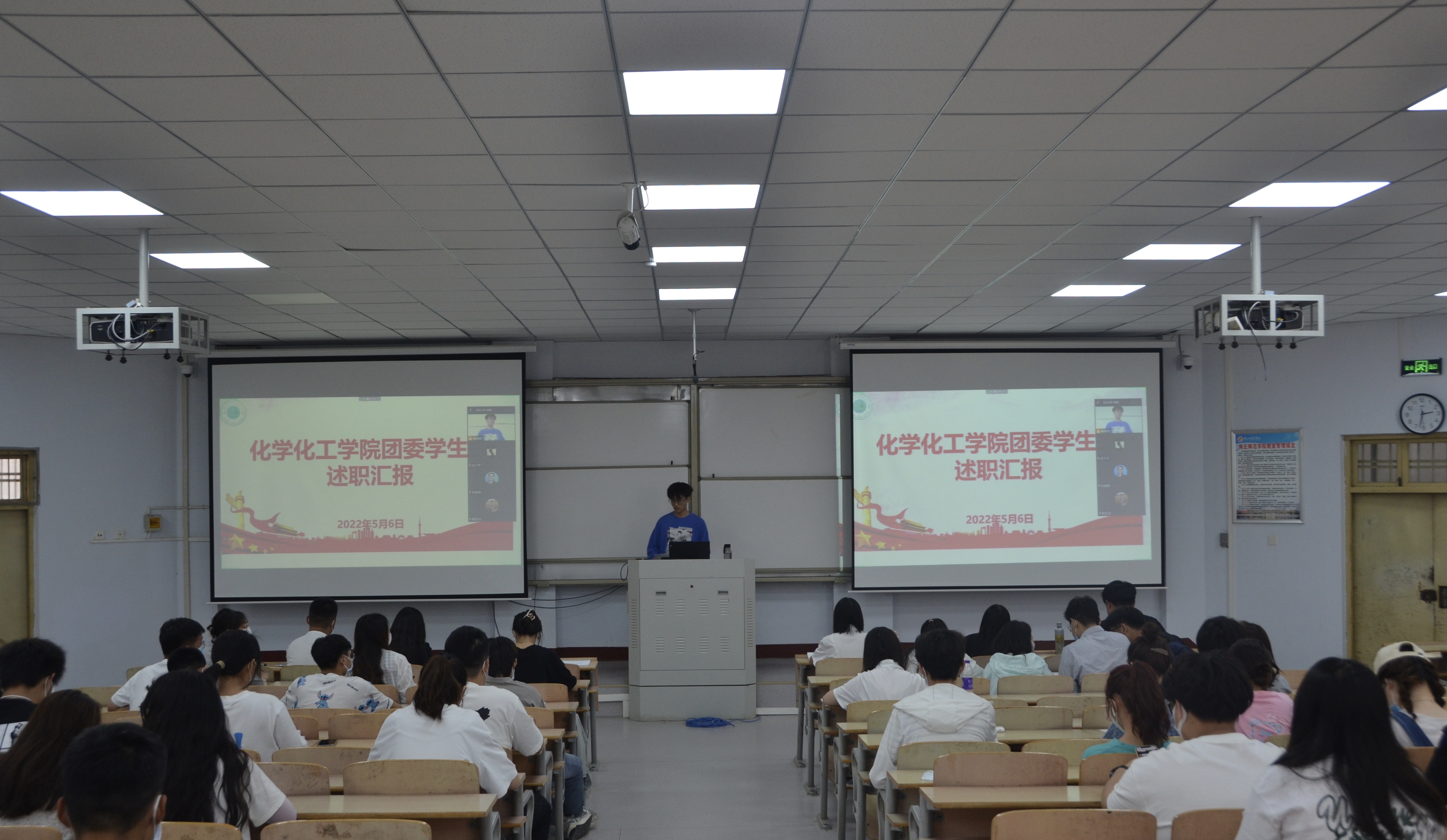 5月6日,英国365集团官网于1号教学楼208教室举行英国365集团官网团委员工会述职汇报暨换届竞选会,公司党委副书记张颜梅、团委副书记郭家瑞出席,全体团学干部参加会议。