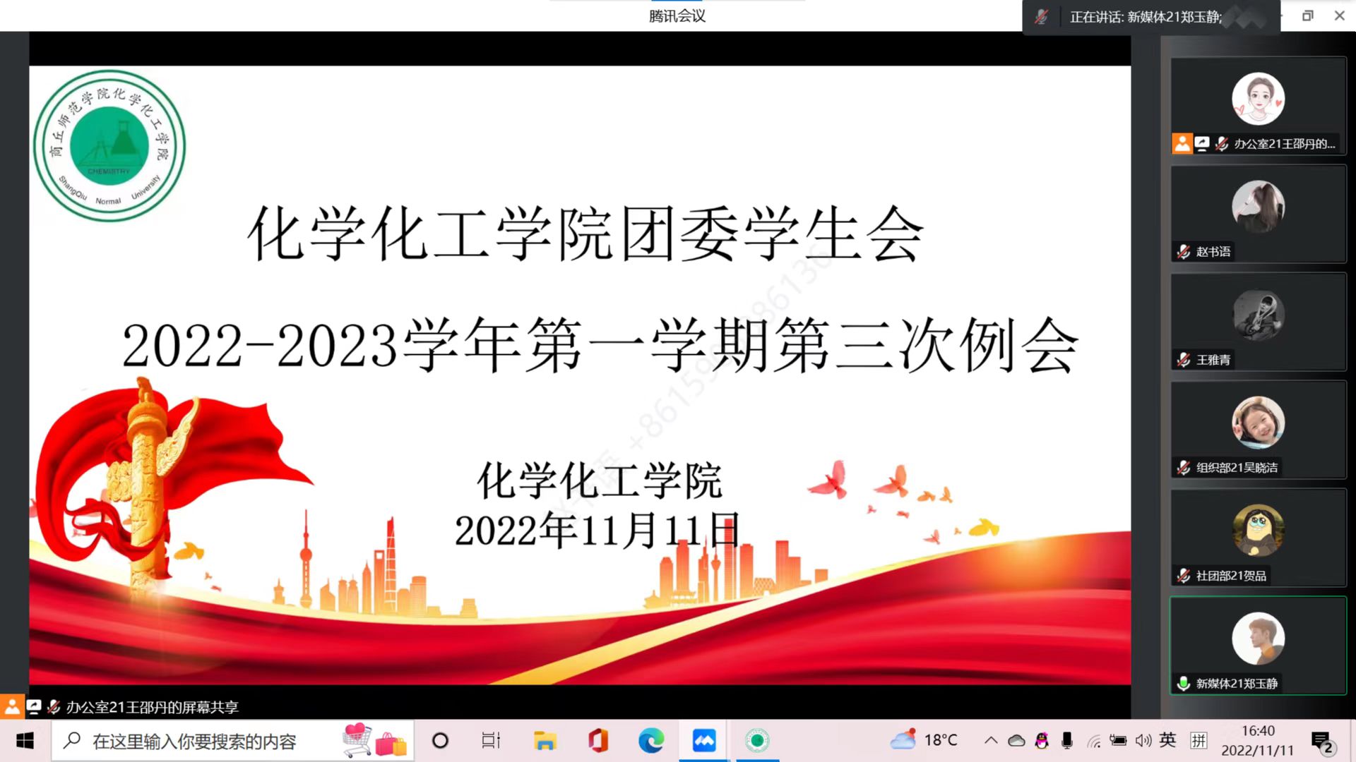11月11日,英国365集团官网团委员工会以腾讯会议的形式召开了2022-2023年第一学期第三次例会,院团委员工会全体成员参加。