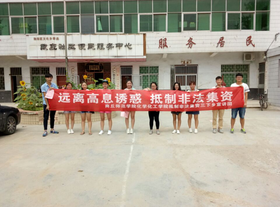 为了给农村地区的人们宣传非法集资的相关知识,7月3日,公司李龙梅老师指导的抵制非法集资科普宣讲团队,在商丘周边农村开展“远离高息诱惑,抵制非法集资”暑期社会实践活动。商丘师院英国365集团官网秉承为村民服务的宗旨,不顾天气的炎热,依然在暑期实践的道路上前行。