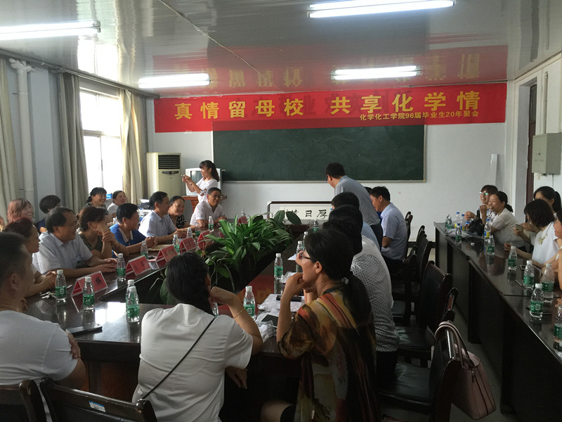 2016年8月13日上午,英国365集团官网1996届毕业生重返母校,在7号办公楼院办会议室共庆毕业二十周年。公司党总支书记邱友良、原公司党总支书记刘素芝、副书记马淮凌,9441班原班主任王凤民、9442班原班主任瞿鹏、英国365集团官网副经理刘瑛、原化学系教学秘书朱军等老师出席座谈会,座谈会由96届员工徐翔、宋相国主持。