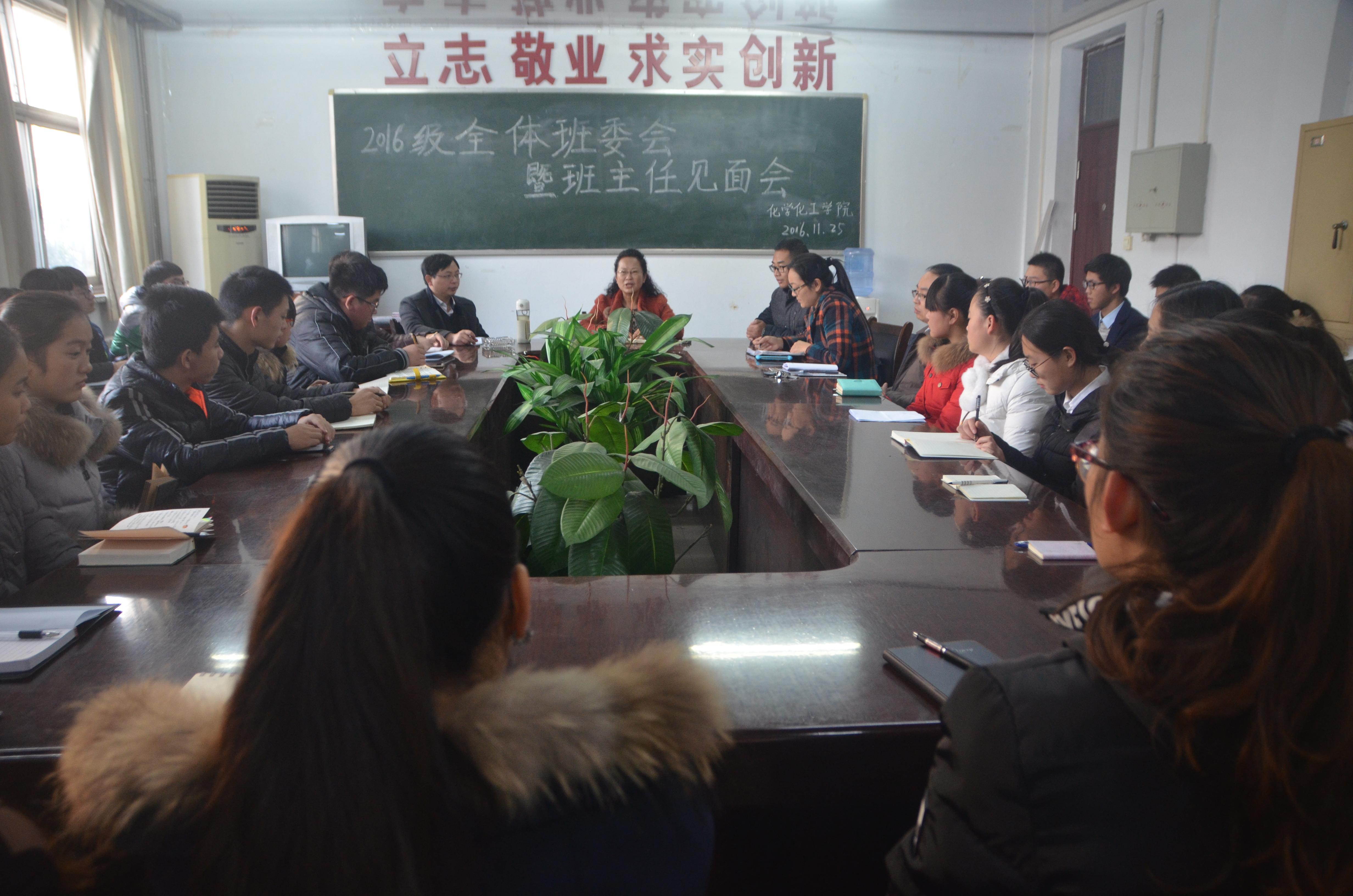 11月25日下午,2016级全体班委会暨班主任见面会在公司会议室举行,公司副经理刘瑛、化学16-1班班主任孟团结博士、化工制药16-1班班主任刘澜涛博士、新能源16-1班班主任魏伟博士、应用化学16-1班班主任蒲三旭博士、辅导员李龙梅老师出席了会议。16级36名班委成员参加了会议。会议由李龙梅老师主持。