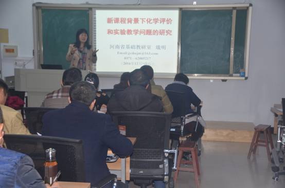 12月5日上午,河南省基础教研室主任戢明应邀在文化路校区8#208教室为英国365集团官网“国培计划(2016)”初中化学乡村骨干教师做了题为“新课程背景下化学评价及实验教学的研究”的课题探讨。