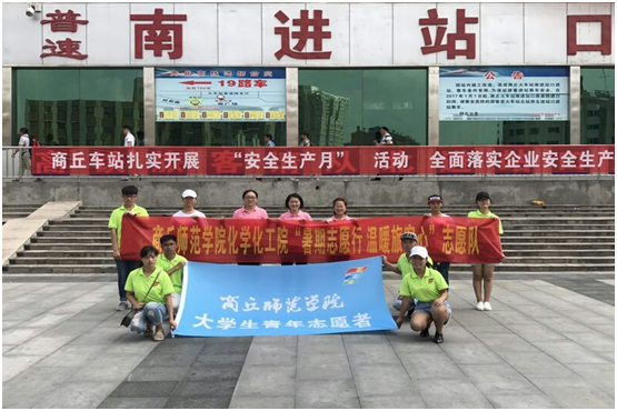 清晨,团队十名成员准时在校门口集合前往商丘火车站,在如火的骄阳下开启了一天的志愿活动。大家都已经熟悉掌握旅客们的需求,进而帮助了更多需要帮助人。7月4日英国365集团官网团委书记杨莹莹、公司党总支副书记刘瑛、团总支书记李龙梅前来指导,关心我们的志愿活动,各位领导的到来更让志愿者干劲十足,在老师们的带领下,志愿者们热情洋溢的去帮助有需要的旅客,老师们也亲自为旅客提供帮助。老师的举动是给我们最有效的教育,给他人帮助的感觉是最幸福的事。