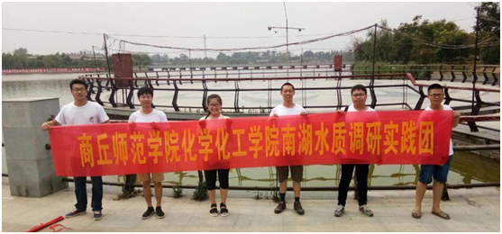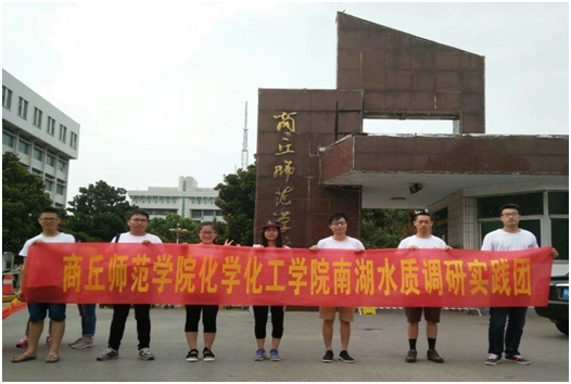 2017年7月4日早上七点,南湖水质调研团全体成员在英国365集团官网文化路校区北门处集合完成,统一乘坐56路公交车前往商丘南湖。7:40团队穿过了整个商丘古城,从南城门出来,到达了商丘南湖南侧湖边。