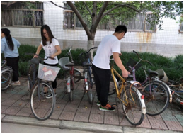 通过志愿者们几天擦洗和摆放自行车,使我们的校园变得更加整洁有条理,方便了那些需要车位的人。同时让更多的人感受到爱护自行车所带来的好处。自行车不是我们的奴隶,而是我们的伙伴。我们不能像奴隶一样去使唤他,压榨它的全部价值,而不给它一分好处。他需要我们的呵护,我们需要它的速度,这是一个合作共赢的事情。