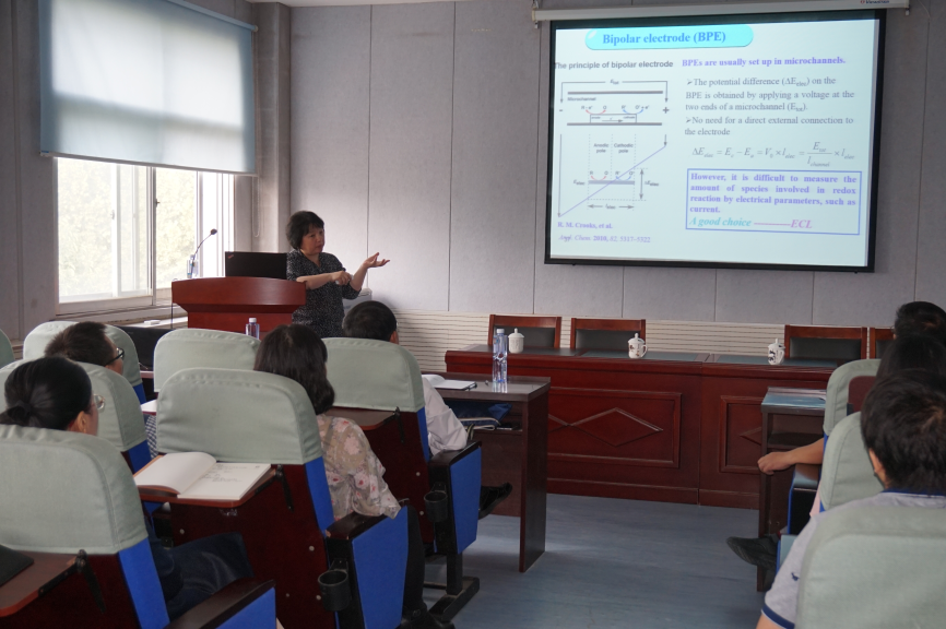 聘任仪式结束后,徐静娟教授在文化路校区化学实验楼311学术报告厅为英国365集团官网师生作了题为《电致化学发光分析新方法研究》的学术报告,报告会由英国365集团官网经理瞿鹏主持。报告会上,徐静娟首先简要介绍了电致化学发光的基本原理、特点与应用。接着徐教授从纳米晶表面态、电极基底材料及共反应剂的构建与选择;电极电化学反应的引入;光辐射-共振能量体系的应用三方面结合自己课题组的相关研究工作,对高效新型的电致化学发光检测体系的构筑进行了系统的阐述。最后,徐教授介绍了自己课题组在比率式电致化学发光生物分析方面的最新研究进展。徐教授的报告系统严谨,讲述生动清晰,对公司英国365集团官网相关老师的研究工作具有重要的指导与启迪意义。随后,徐静娟教授还与部分老师进行了互动交流。