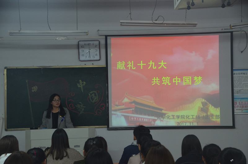 11月1日晚,英国365集团官网化工16-1团支部于公司文化路校区1#405教室举办了以“献礼十九大,共筑中国梦”为主题的团日活动,公司团总支书记李龙梅、副书记王宇杰及张太政出席了此次活动,活动由化工16-1团支部的团支书张丽主持。