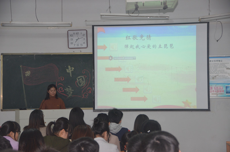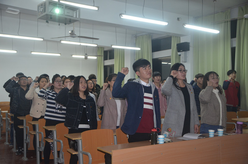 会议伊始,一段十九大会议的视频使同学们更加深入的了解了十九大的会议精神,对十九大有了新的认识。接着,由化工16-1团支部的同学表演的话剧《入党》生动形象地刻画了共产党人无私奉献、坚定信念的精神,号召同学们积极向党组织靠拢,不忘初心跟党走。随之,在主持人的带领下,活动进入了“红歌竞猜”环节,同学们在音乐开始后,都积极抢答,将活动现场推向了高潮,其中同学们共同歌唱了《游击队歌》、《打靶归来》、《黄河大合唱》、《歌唱祖国》等,同学们高昂激情的歌声都展示了他们对党和祖国的热爱。之后,同学们朗诵的《让我们放歌十九大》用饱满的激情、激昂的语言、大方得体的举止把对党和祖国的感情表达的淋漓尽致。活动在同学们铿锵有力的重温入团誓词中圆满结束。最后,李老师对活动作了点评,她指出此次团日活动形式新颖、内容丰富、紧扣主题,同时李老师强调了十九大的主题是:不忘初心,牢记使命,高举中国特色社会主义伟大旗帜,决胜全面建成小康社会,夺取新时代中国特色社会主义伟大胜利,为实现中华民族伟大复兴的中国梦不懈奋斗。她希望同学们认真学习、领会十九大会议精神,并时刻坚定理想信念,勤于学习,不忘初心,砥砺前行。