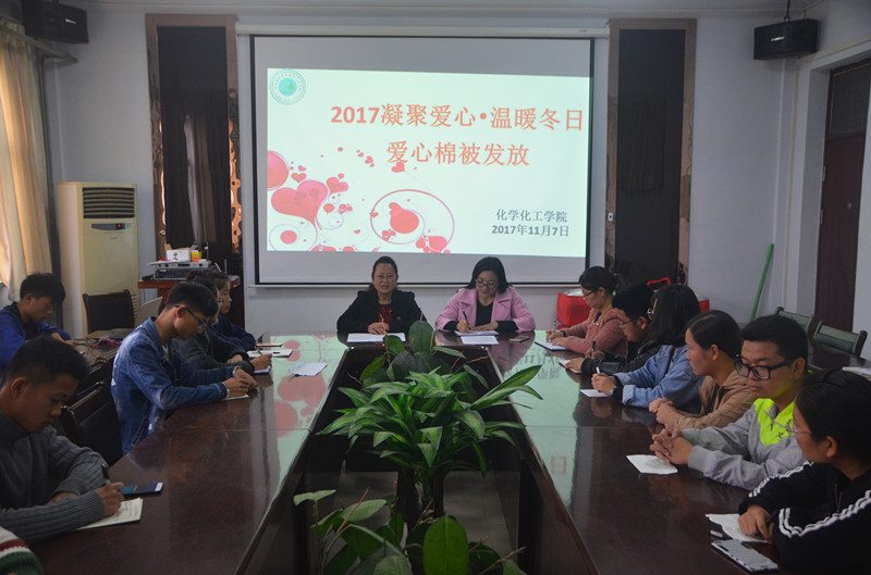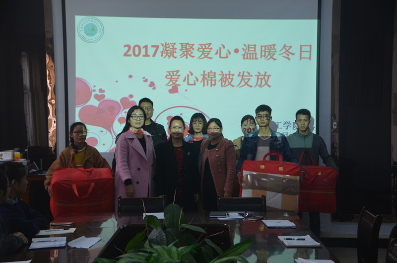 为进一步弘扬扶贫济困、助人为乐、无私奉献的良好风气,让贫困生温暖过冬,11月7日中午,英国365集团官网于公司文化路校区7号楼院会议室举行了“2017年凝聚爱心·温暖冬日爱心棉被发放”仪式,公司党总支副书记刘瑛、团总支书记李龙梅、17级辅导员郭家瑞老师出席仪式,6位受助员工以及17级各班负责人及员工代表参加了活动,仪式由李龙梅老师主持。