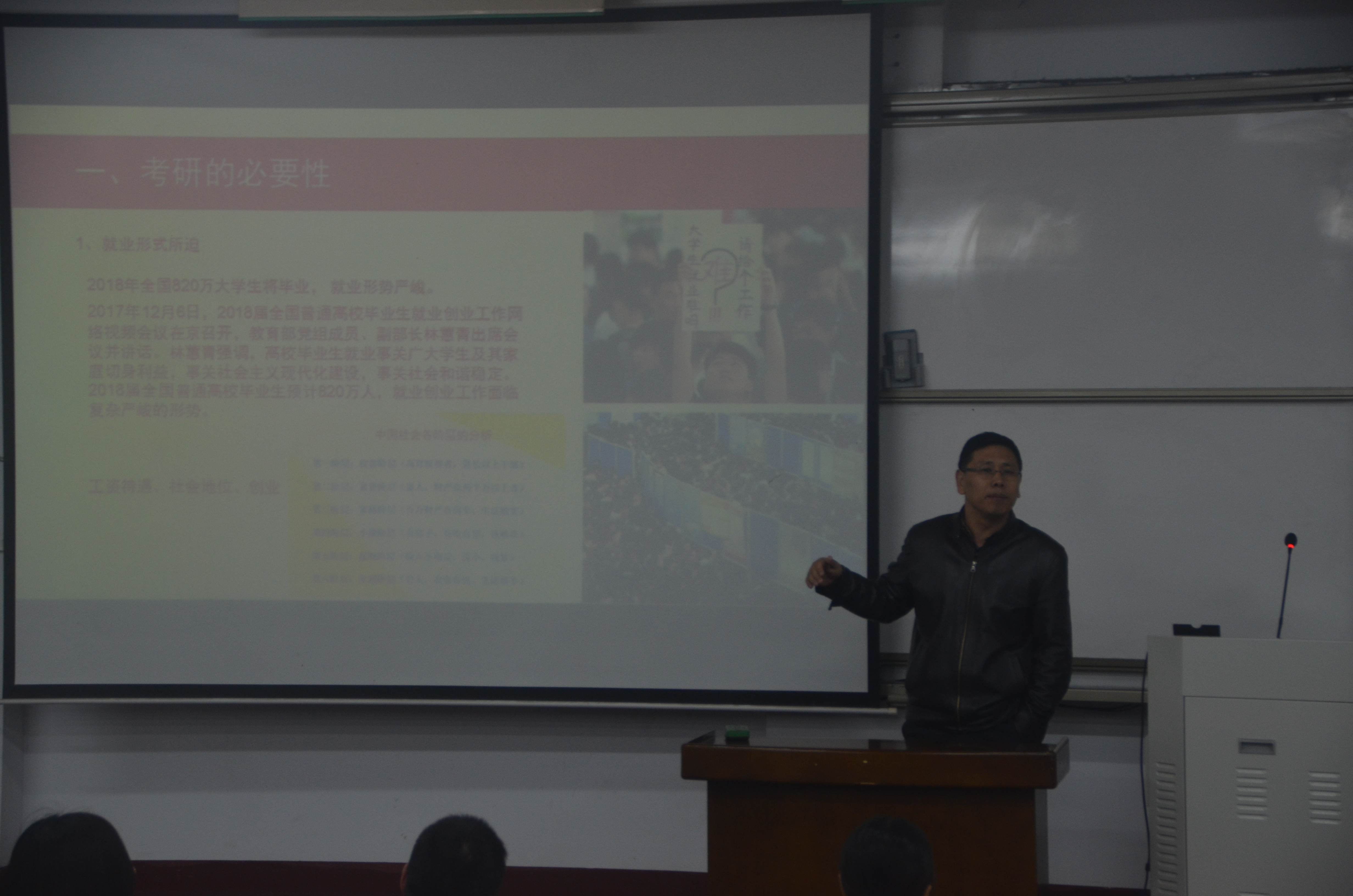 大会开始,由副经理孟团结从考研的重要性、考研政策等几个方面为同学们进行讲解,他希望同学充分认识到考研的重要性,尽快确定报考的公司和专业并做好英语、政治、数学、专业课的复习准备。副经理巧妙的结合寓言故事为同学们分析利害,告诫同学们要有准备吃苦的决心、克服困难的信心、抵制各种诱惑及耐得住寂寞的恒心,调动了同学们的积极性,现场气氛十分活跃。随后,于丽敏老师和郝远强老师也就考研的重要性为同学们进行分析,希望同学们能够积极考研,为自己的将来做规划。最后,经理瞿鹏告诫同学们要好好把握考研的机会,积极备考。此外还对员工提出的问题结合亲身经历进行详细解答,同时对有困惑的同学进行思想引导,对他们在学习和处事上提出了希望与要求,现场气氛达到高潮。