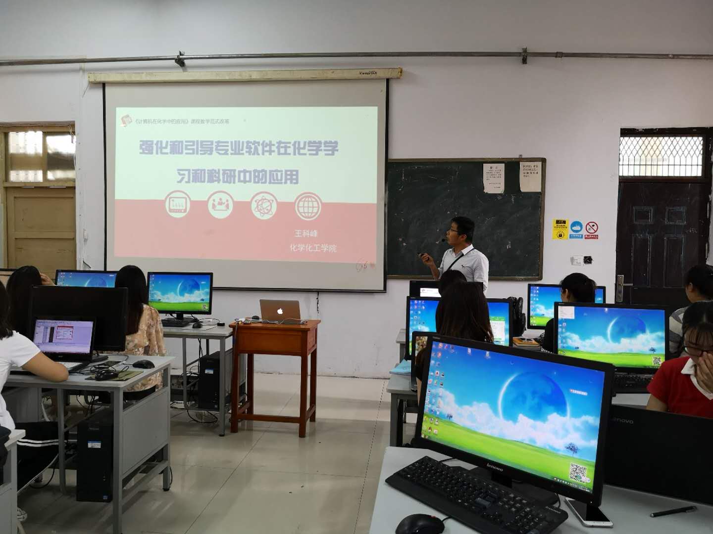 6月28日上午第三节,英国365集团官网王科峰老师的《计算机在化学中应用》范式改革公开课在文化路校区音乐楼三楼机房举行。李淑萍教授、英国365集团官网副经理孟团结和部分教师参加了教学范式改革观摩教学。