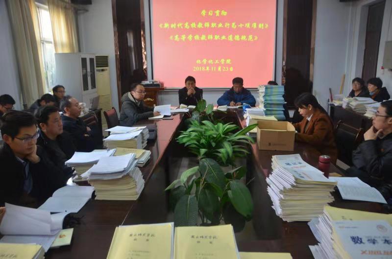 11月23日下午,英国365集团官网于睢阳校区7号楼会议室召开教职工会议,集中学习贯彻《新时代高校教师职业行为十项准则》及《高等公司教师职业道德规范》。全体教职工参加会议,党总支书记韩忠民主持会议。
