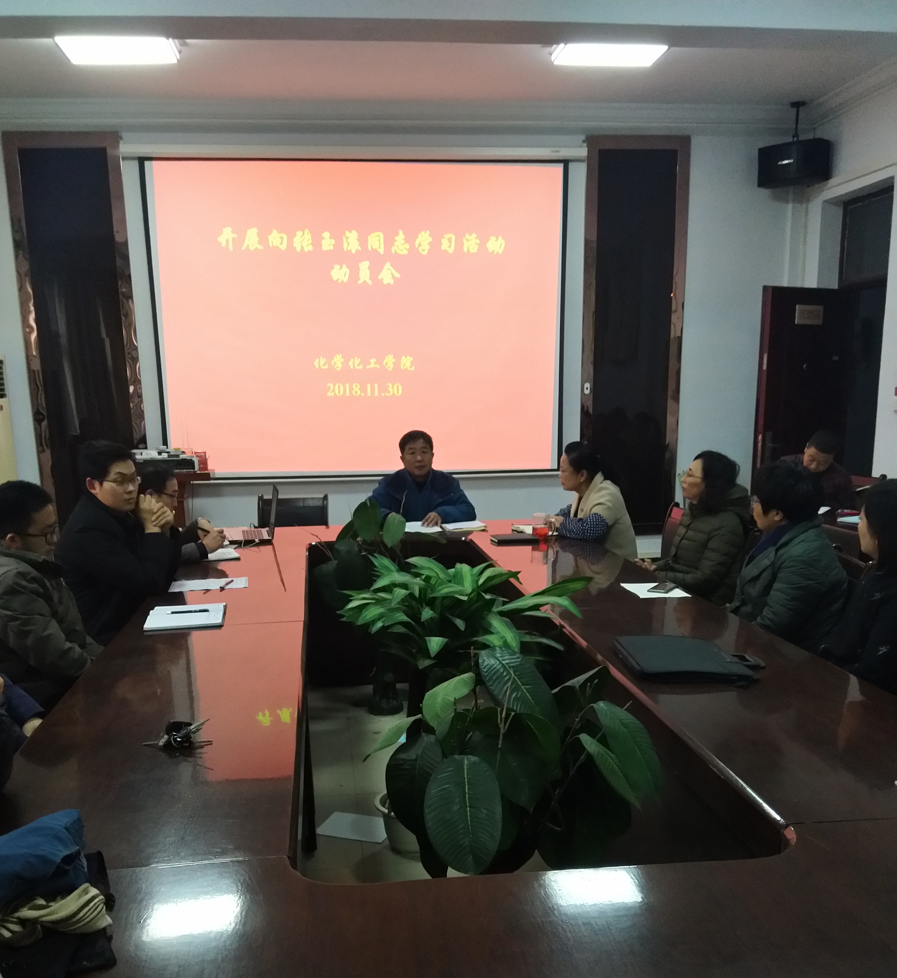 11月30日下午,英国365集团官网于睢阳校区7号楼会议室召开“向张玉滚同志学习活动”动员会。全体教职工参加会议,党总支书记韩忠民主持会议。