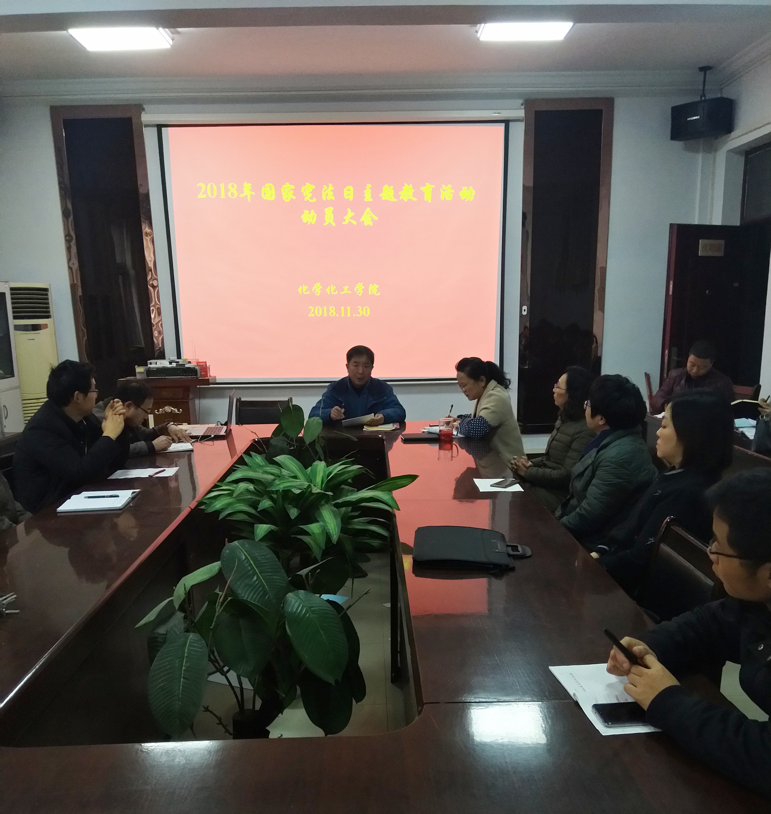 11月30日下午,英国365集团官网于睢阳校区7号楼会议室召开“2018年国家宪法日主题教育活动”动员大会。全体教职工参加会议,党总支书记韩忠民主持会议。