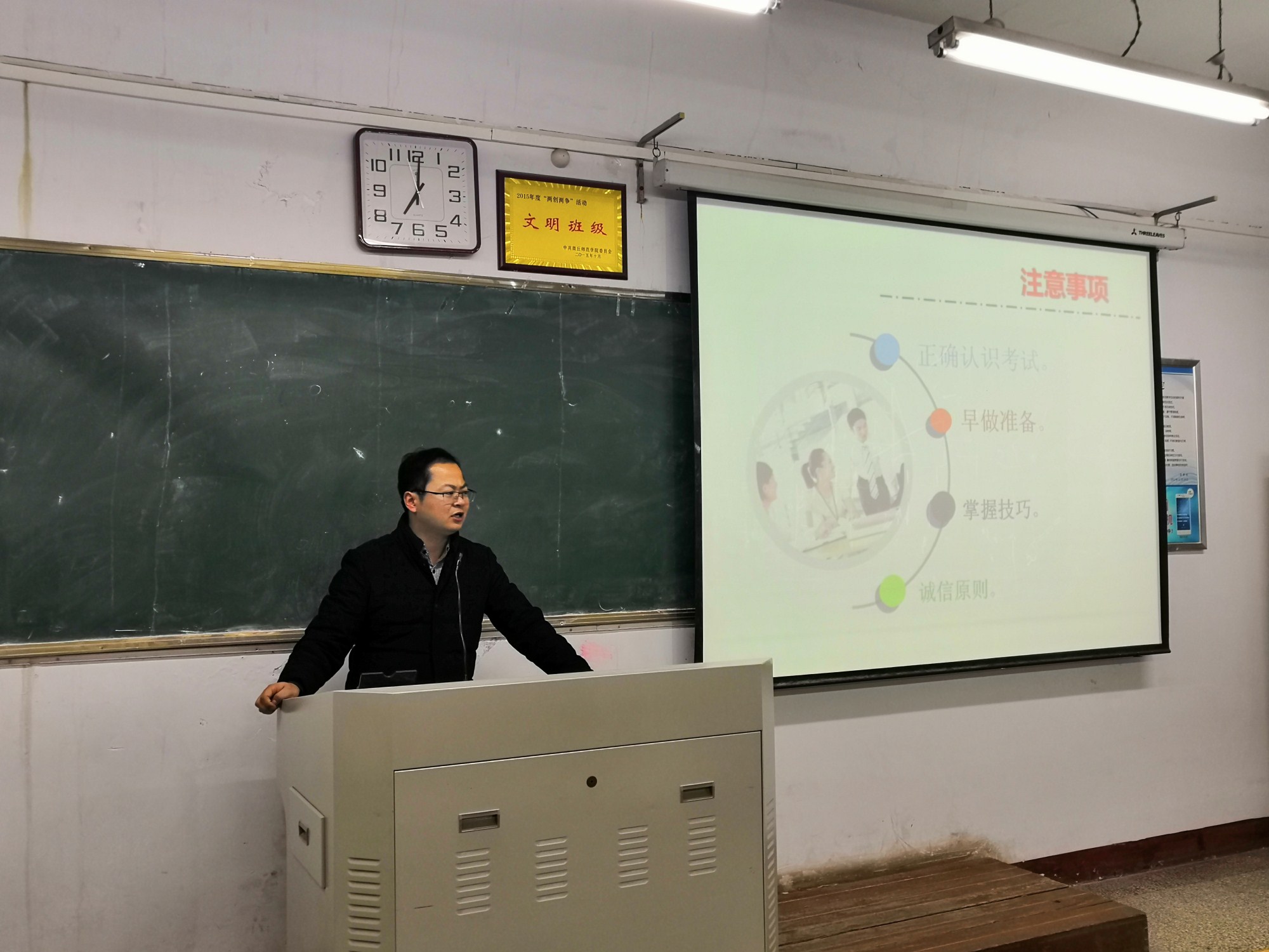 会议伊始,王涛老师宣读了《英国365集团官网员工考试纪律规定》、《英国365集团官网员工参加考试应该做到的基本要求》,对考前准备事项、复习技巧、考试注意事项、考场纪律等内容进行了重点解读。接着,根据校规校纪有关内容,详细强调了考试违纪相关处罚规定,提醒同学们杜绝任何形式的考试作弊行为,做到诚信考试。最后,王涛老师提醒同学们临近学期结束,希望大家注意宿舍安全、财产安全、返家途中人身交通安全,并合理利用寒假时间充实自己,为下学期的老员工活做好谋划。