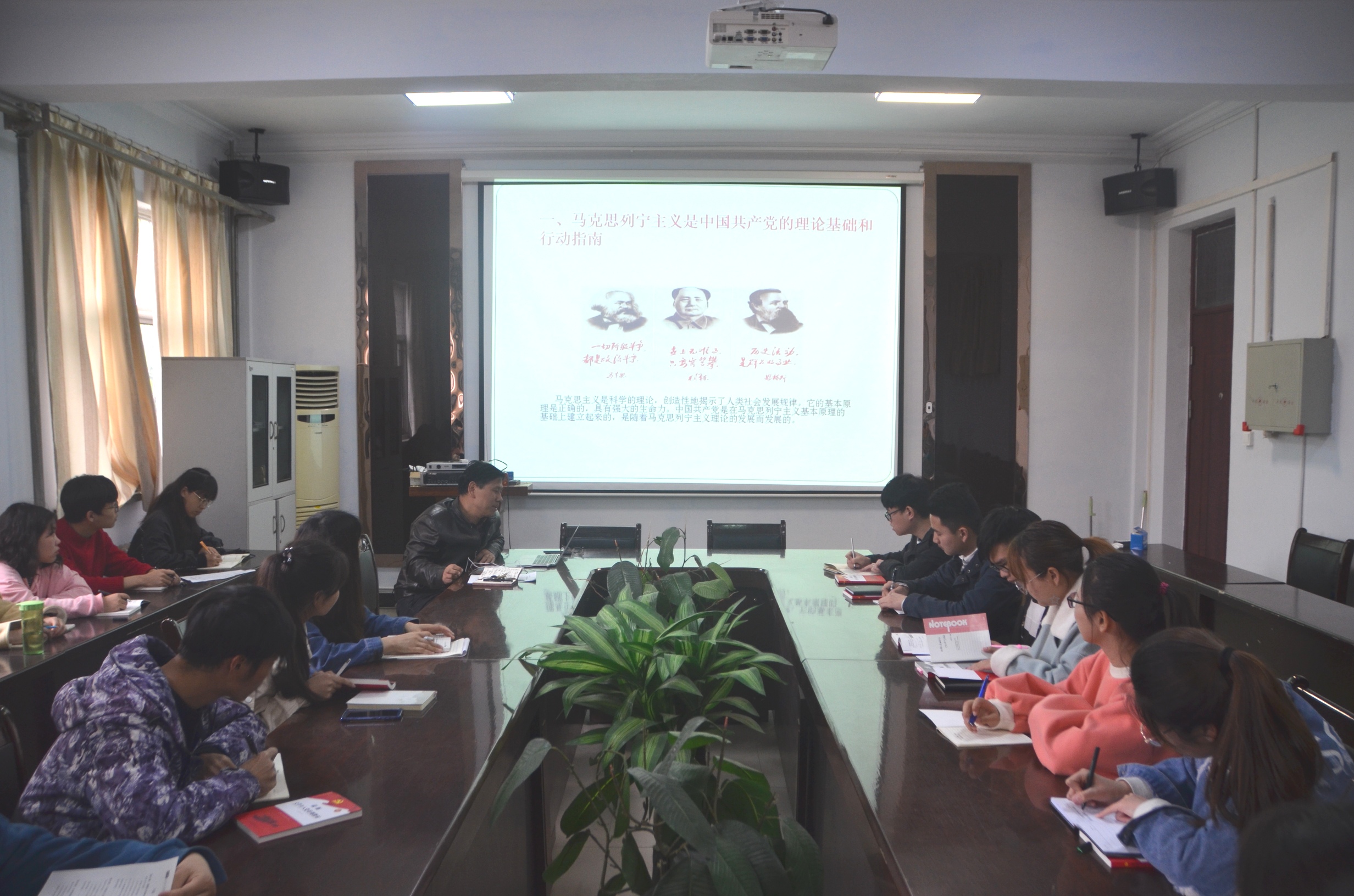 为了贯彻党的行动指南,践行党的理论方针,4月12日,英国365集团官网于睢阳校区7号楼会议室进行入党积极分子中级培训系列主题党课第三讲“一脉相承、与时俱进——中国共产党的指导思想”。公司全体中级入党积极分子参加,经理瞿鹏主讲。