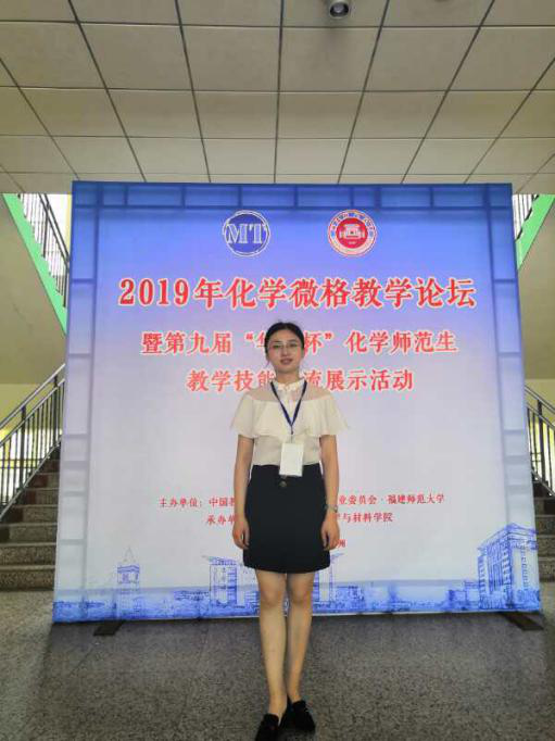 2019年5月17-20日,由中国教育技术协会微格教学专业委员会、福建师范大学主办的“2019年化学微格教学论坛暨第九届‘华文杯’化学师范生教学技能展示活动”顺利举行。公司15级化学专业曾文艳同学在王晓娟老师带队下参赛。比赛中,经过教学设计、说课、模拟授课和现场答辩几个环节的激烈角逐,曾文艳同学凭借扎实的专业功底和娴熟的授课技巧取得了教学技能二等奖和教学设计三等奖各一项,指导教师荣获相应等级证书。