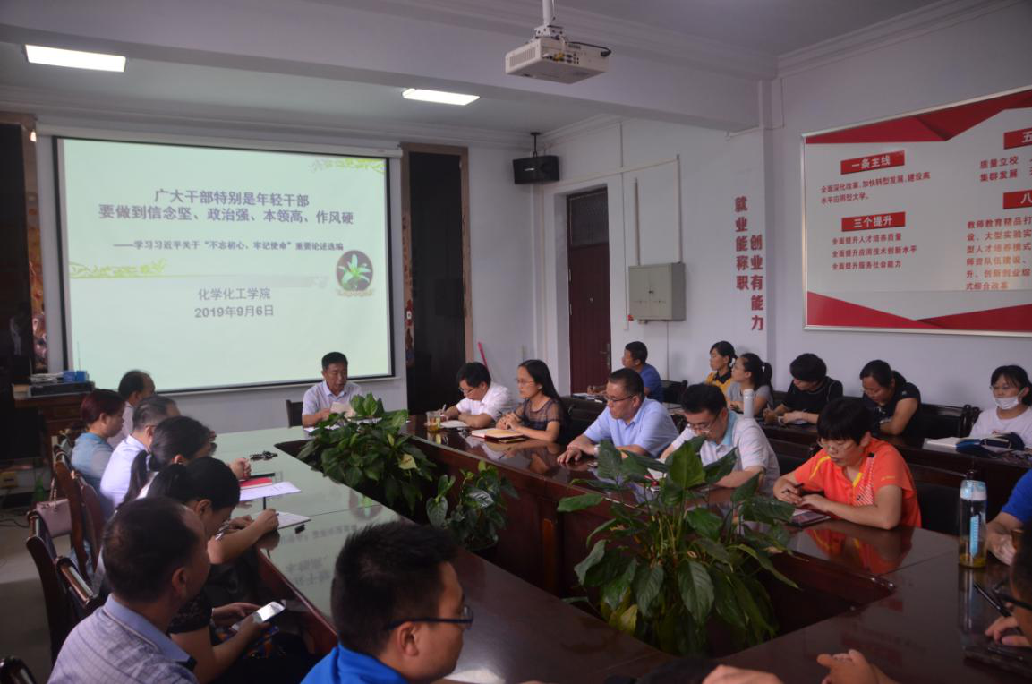 为了帮助广大干部特别是年轻干部在常学常新中加强理论修养,在真学真信中坚定理想信念,在学思践悟中牢记初心使命,在细照笃行中不断修炼自我,在知行合一中主动担当作为,保持对党的忠诚心,9月6日下午,英国365集团官网于睢阳校区7号楼会议室召开了学习习近平关于“不忘初心、牢记使命”重要论述选编会议。会议由党总支书记韩忠民主持,全体教职工参加。