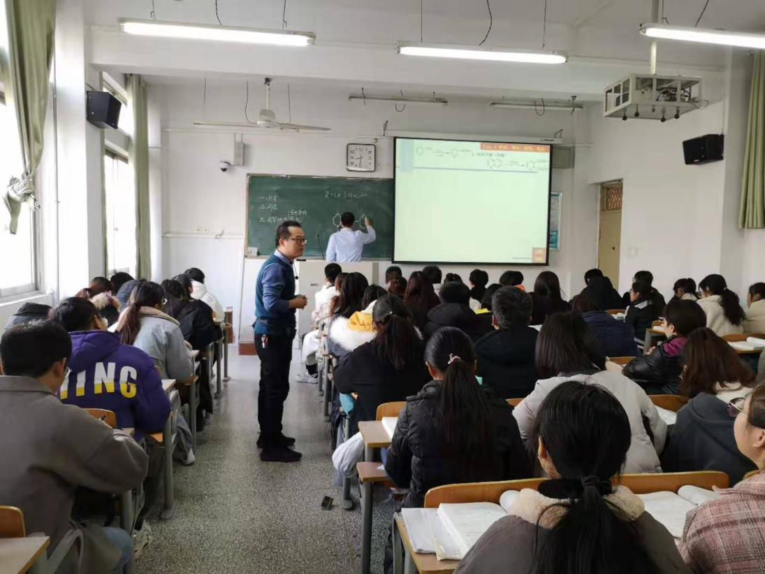 2019年12月11日周三上午第一节,英国365集团官网刘新明老师的《有机化学》课程教学范式改革公开课在文化路校区1号教学楼411教室举行。授课班级为2018级材料科学、新能源专业18-1班,英国365集团官网孟团结副经理、公司近三年新进教师参加了此次课堂教学观摩活动。此次公开课的内容是:第十七章杂环化合物。