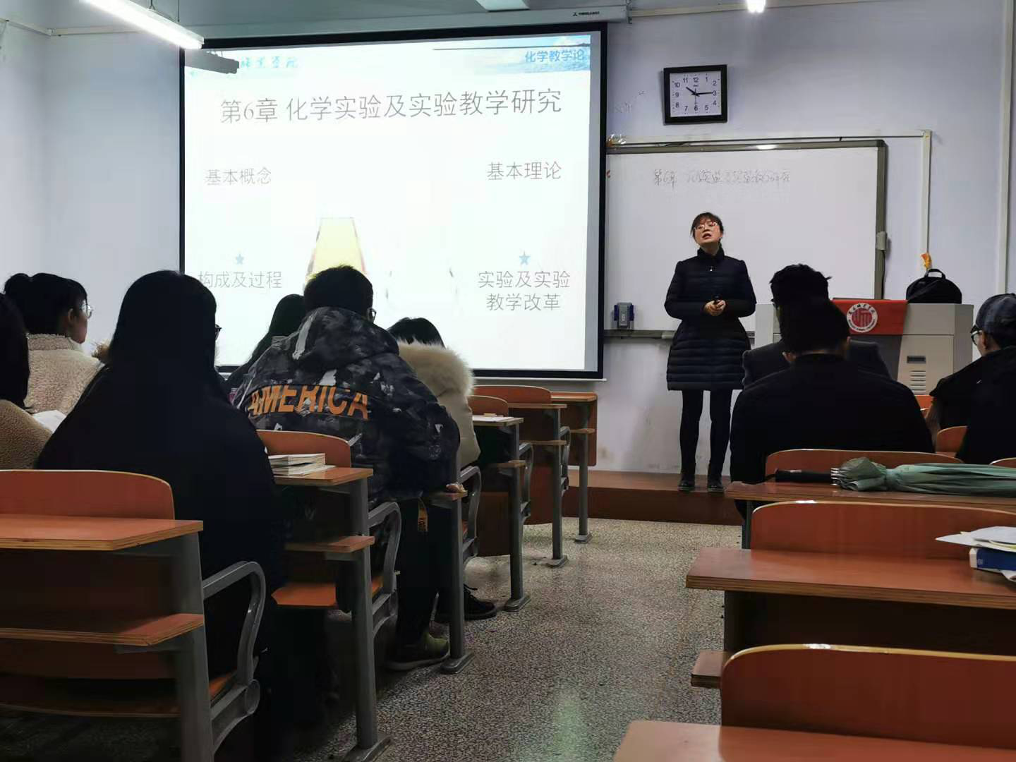 为了进一步加强公司青年教师的培训与交流,促进公司青年教师尽快适应公司转型发展和专业建设要求,提高教师的专业素质和教学能力,夯实教师驾驭课堂教学的基本功,本学期公司开展了青年教师公开课活动。2019年12月16日上午,公司青年教师张南在导师曹广秀教授指导下在睢阳校区1号教学楼407教室进行《化学教学论》公开课。化学系主任韦秀华副教授,青年教师导师曹广秀教授、刘新民老师、王晶晶老师等观摩了本次公开课。