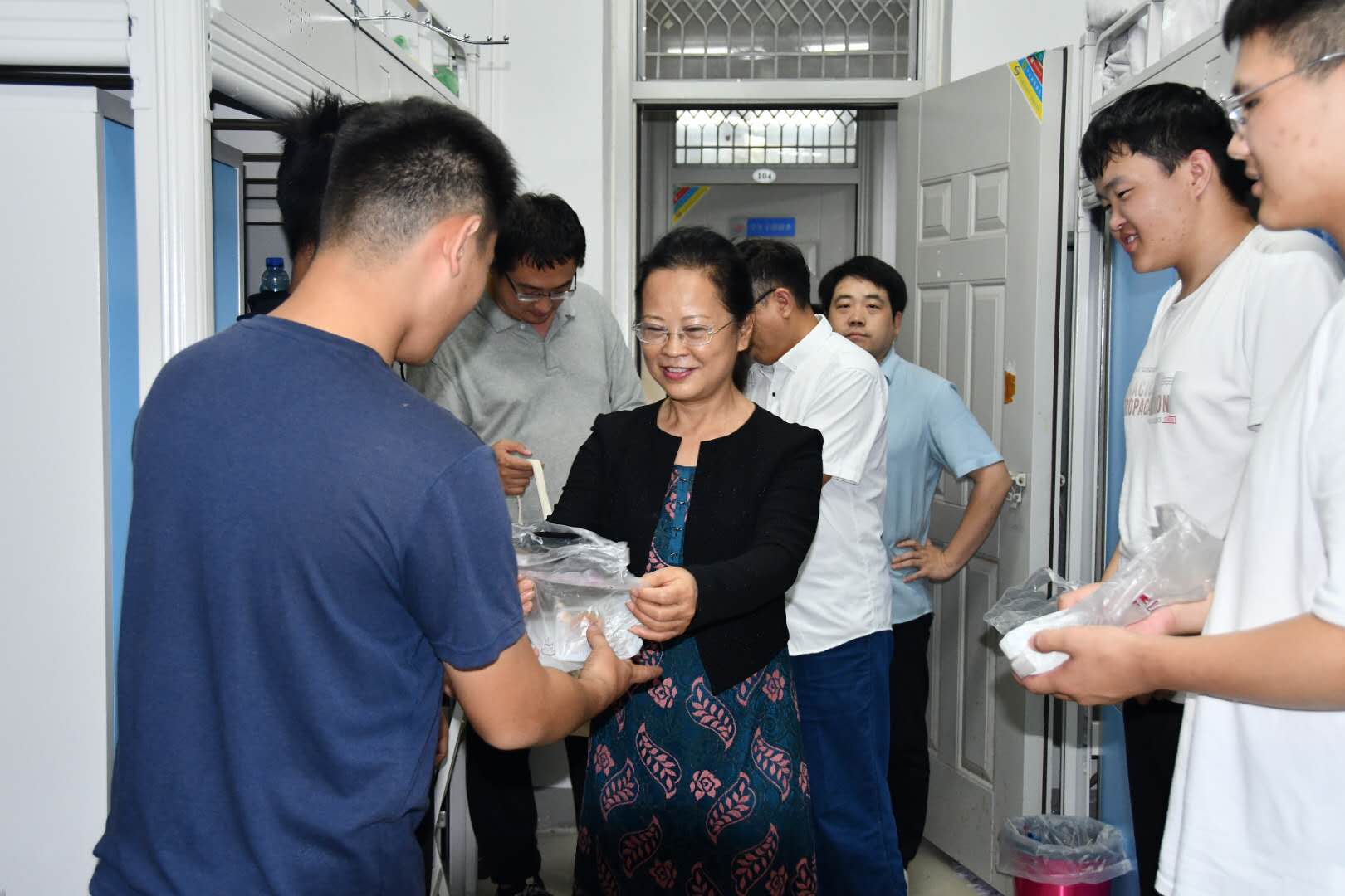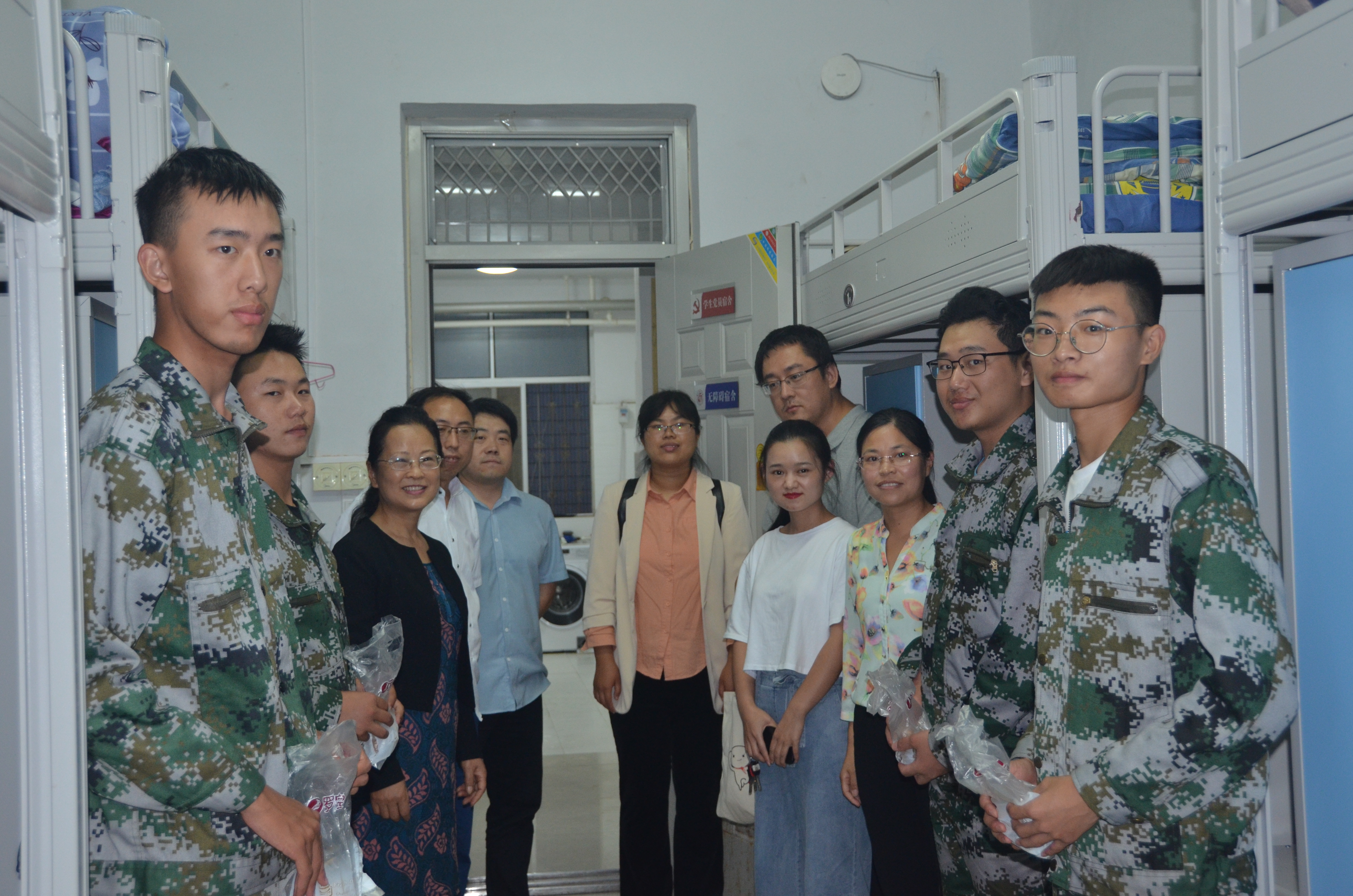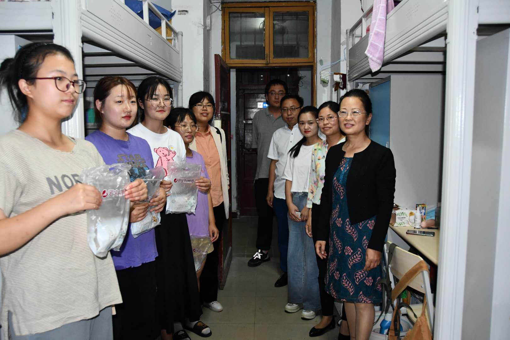 当中秋邂逅国庆,名为家国同庆,欢聚的门化成皎洁的明月带远方的人回家,让长挂星空的思念落地,点亮万家灯火,温暖中华大地。为了让新生感受到家一般的温暖,2020年9月30日下午,公司党总支副书记刘瑛带领辅导员、2020级新生班主任到宿舍看望慰问新生,并为新生发放月饼,送上国庆、中秋双节祝福。