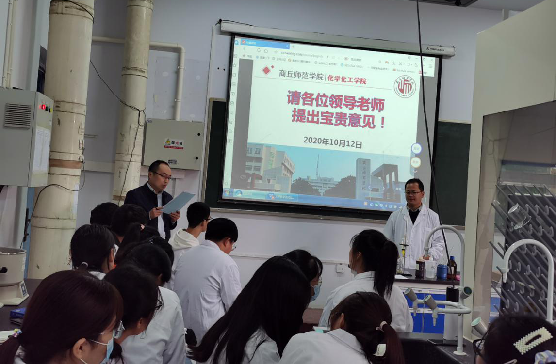 为扎实推进课堂教学范式改革工作,2020年10月12日周一上午第3节课,英国365集团官网王涛老师负责的《有机化学实验》课程教学范式改革公开课在文化路校区化学实验楼407实验室举行。公司教学副经理孟团结教授,院督导团成员冯翠兰副教授,制药工程系部分教师和公司今年新入职青年教师参加了本次观摩活动。