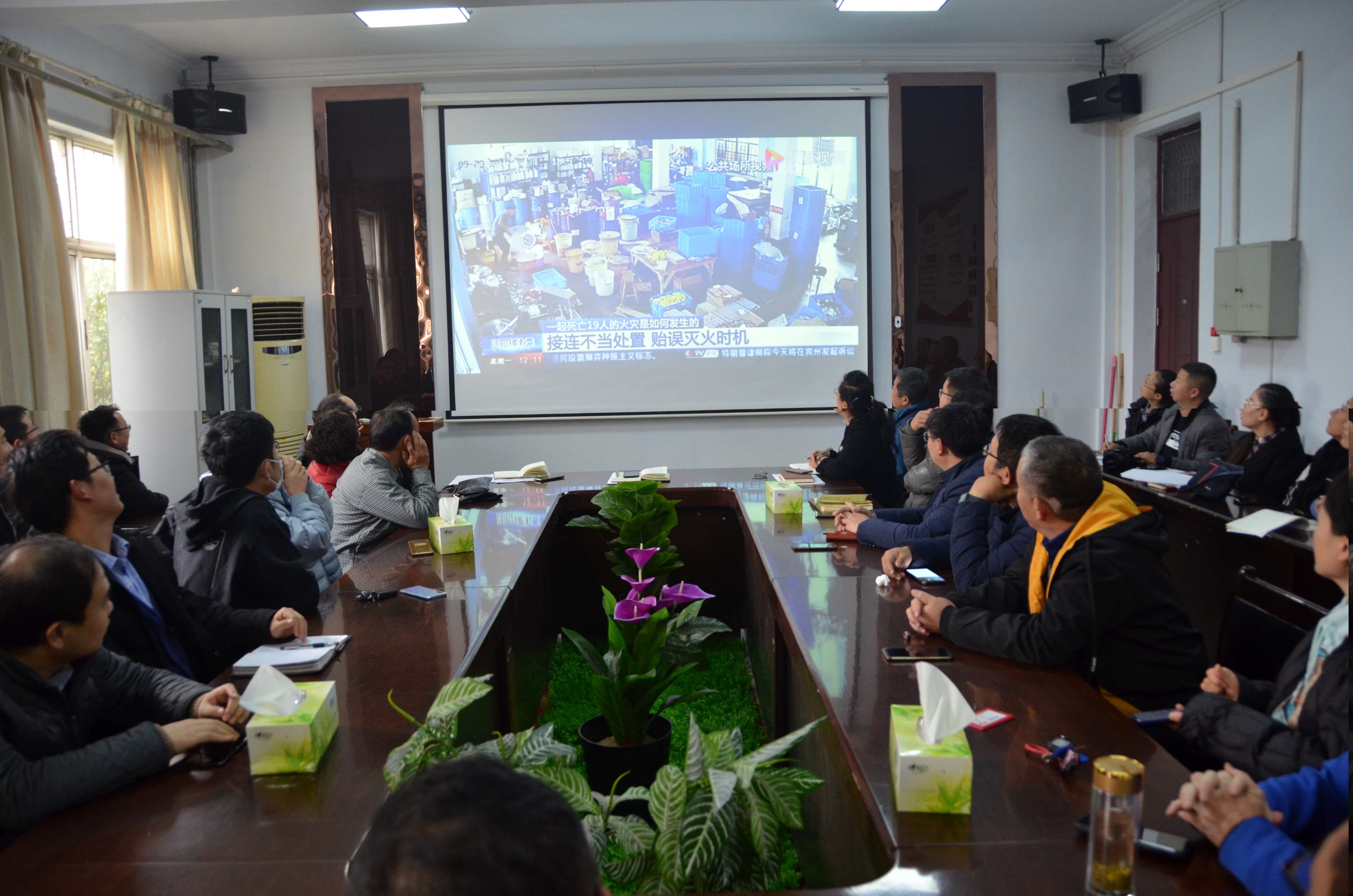 通过观看浙江宁海一家日化厂重大火灾事故的监控录像视频,让大家了解了一场酿成19人死亡的火灾发生前后的真实场景。会议指出全体师生要对于身边的安全隐患加以防范,尤其注重实验室安全、办公场所用电安全、员工宿舍用电安全,要认真学习掌握安全知识提高安全意识。