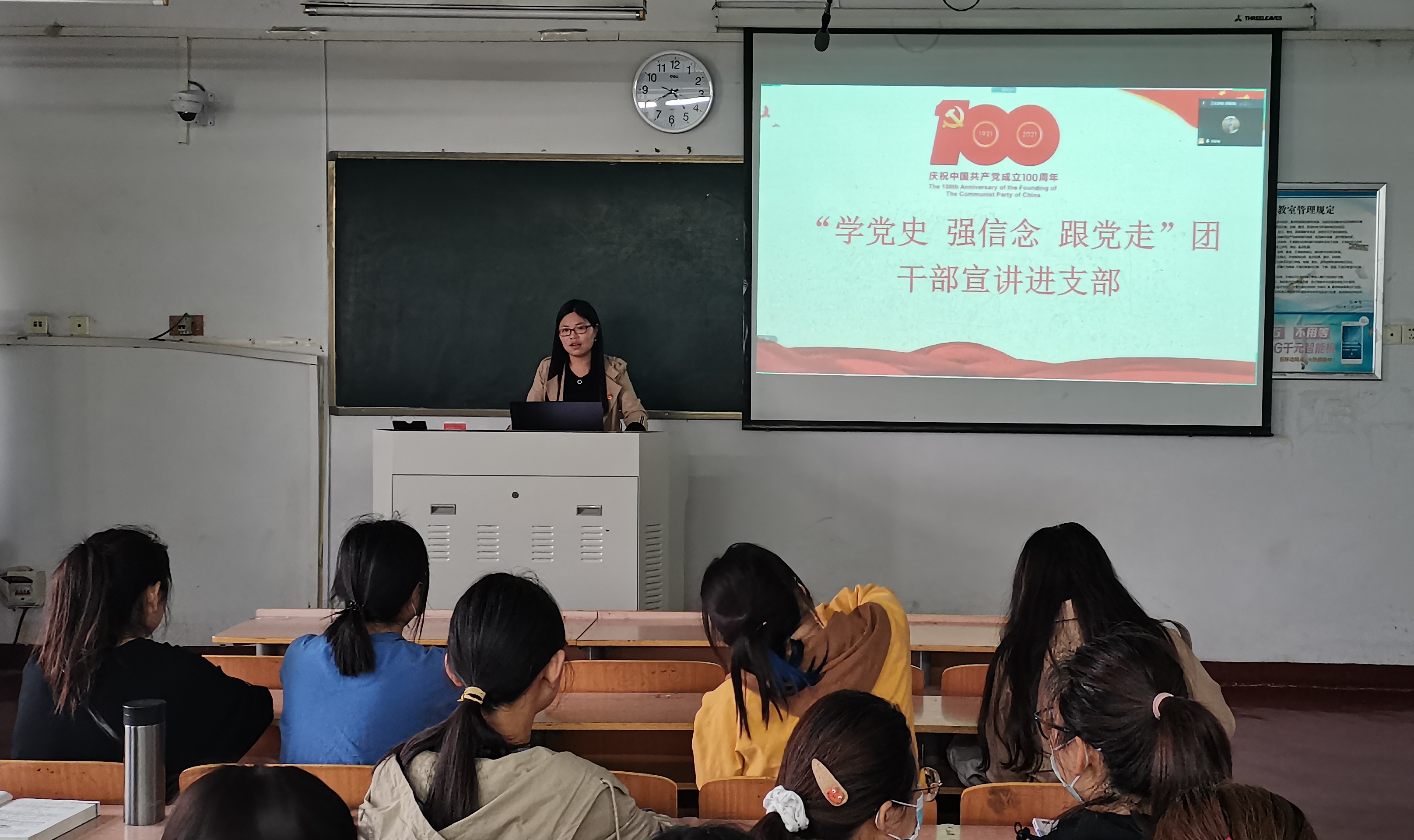 为进一步坚定听党话、跟党走的信念,加强员工们的责任意识,提高思想觉悟。4月24日,化学化工学通过线下线上结合的方式开展了“学党史、强信念、跟党走”团学干部宣讲进支部活动,院团总支副书记郭家瑞上了“建设有中国特色的社会主义”主题团课。