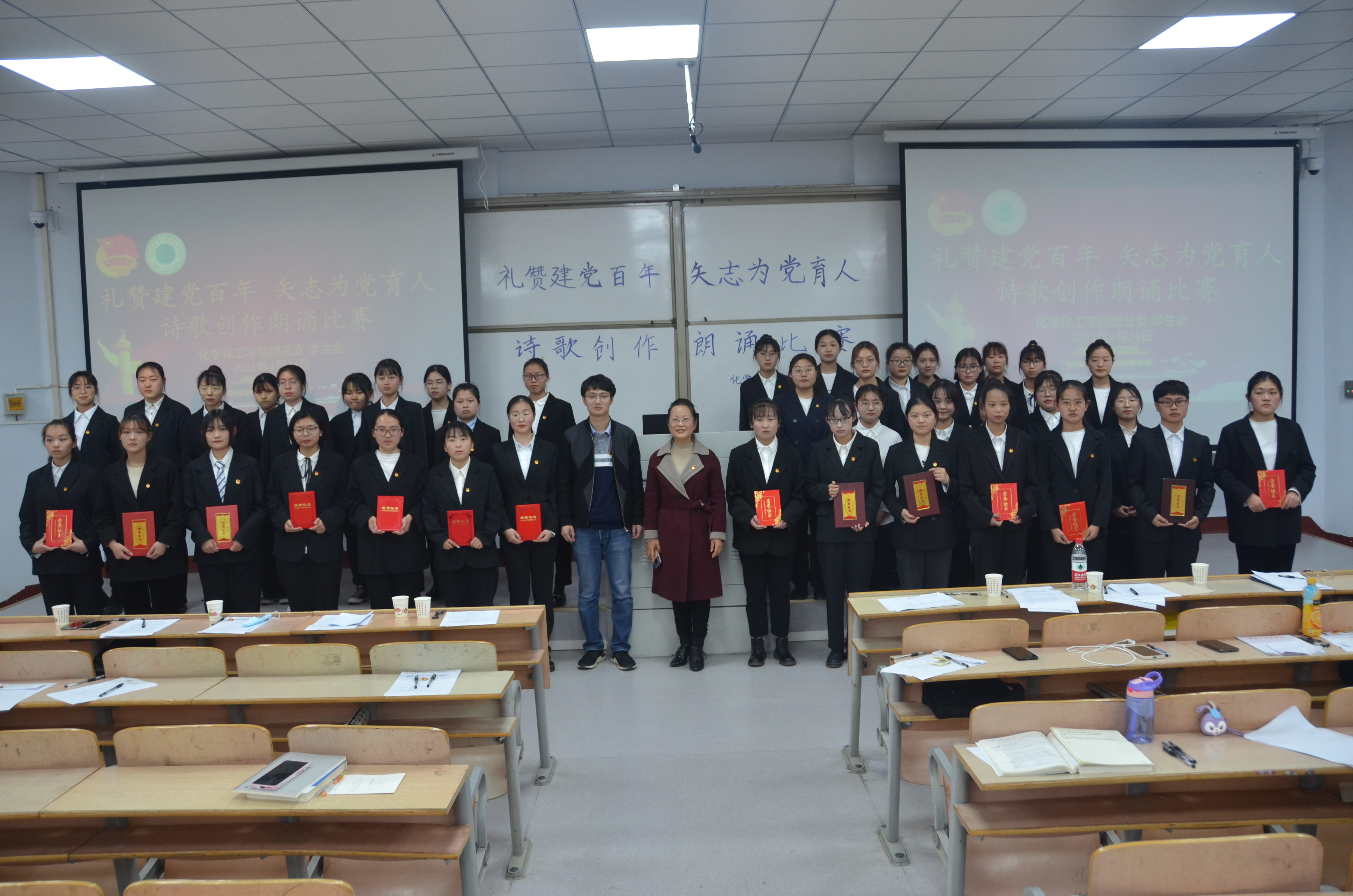 为隆重庆祝中国共产党成立100周年,引导员工弘扬革命传统、传承红色精神,鼓起迈进新征程、奋进新时代的精气神,2021年4月24日,英国365集团官网于睢阳校区1教学号楼107教室举行 “礼赞建党百年,矢志为党育人”诗歌创作朗诵比赛。党总支副书记刘瑛、团总支副书记郭家瑞、学工办副主任史展出席,各年级员工代表参加。