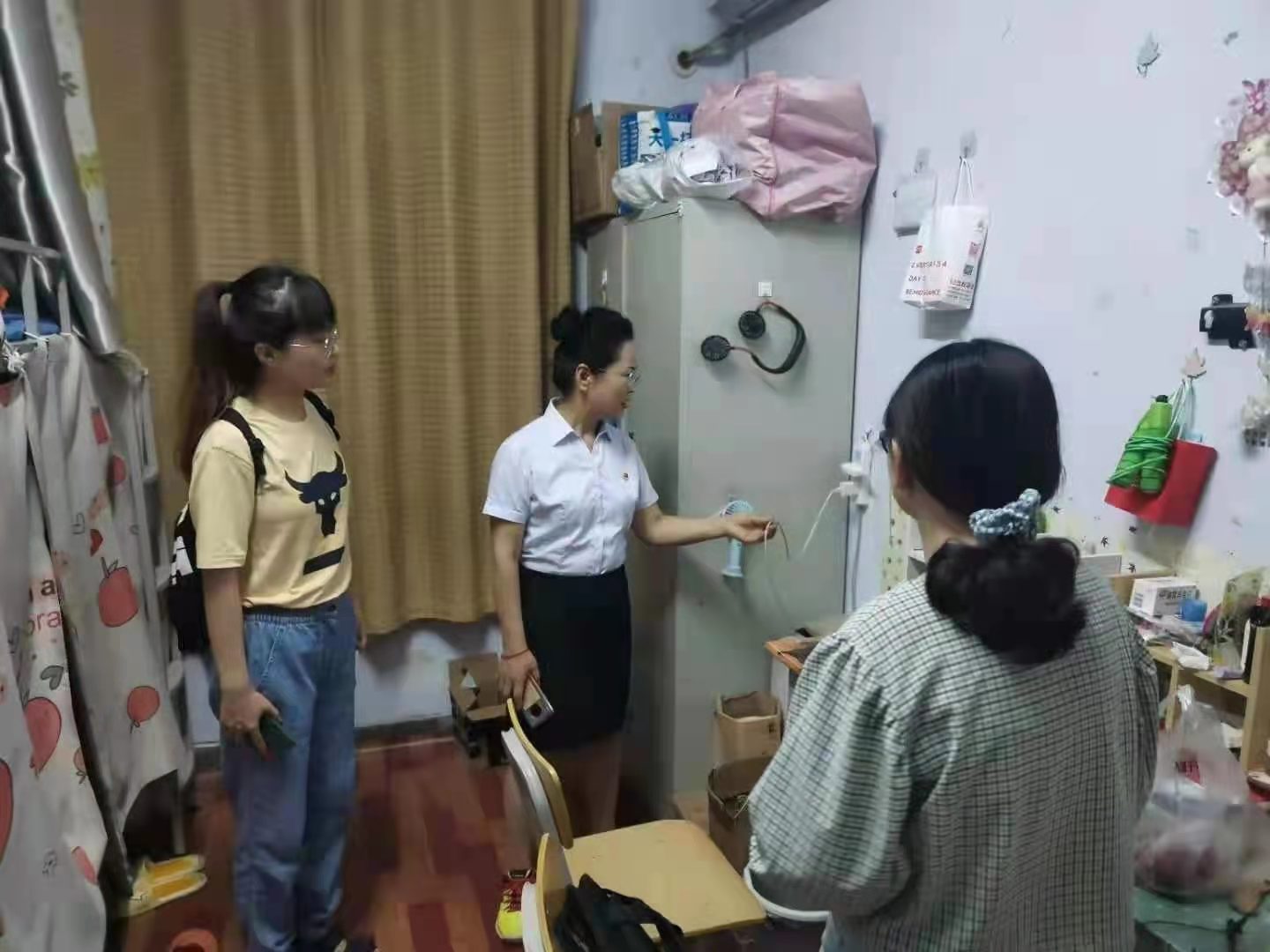同时,校工会副主席刘瑛带领团总支副书记、学工办副主任、辅导员、班主任对员工宿舍开展了全面、仔细的检查。排查过程中,老师们逐个走访员工宿舍,深入了解宿舍具体情况,全面检查了是否存在飞线充电、使用违规电器、豢养宠物、卫生脏乱差等情况。发现问题,立行立改,及时排除安全隐患,确保员工安全。
