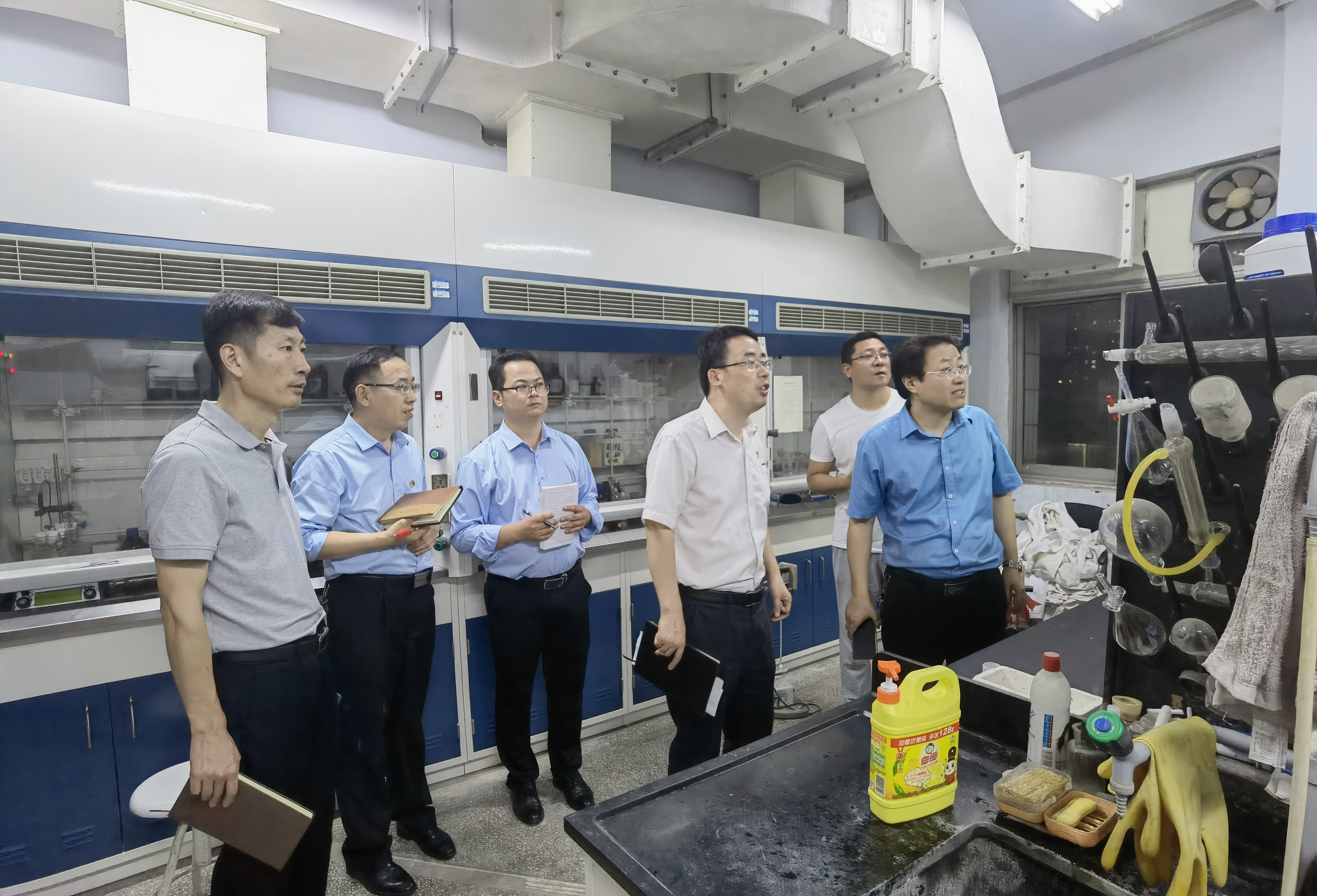 会后,实验室建设和管理中心主任赵龙飞、霍特、庞永清、李征、公司党委书记李海涛、经理张银堂、各平台负责人、办公室主任、教学办主任等人对各实验室开展地毯式排查,查看了危化品储存保管及水、电、卫生等工作,要求实验安全管理,确保公司科研与教学工作的平稳运行,确保师生生命健康安全和教学科研工作危化品安全。