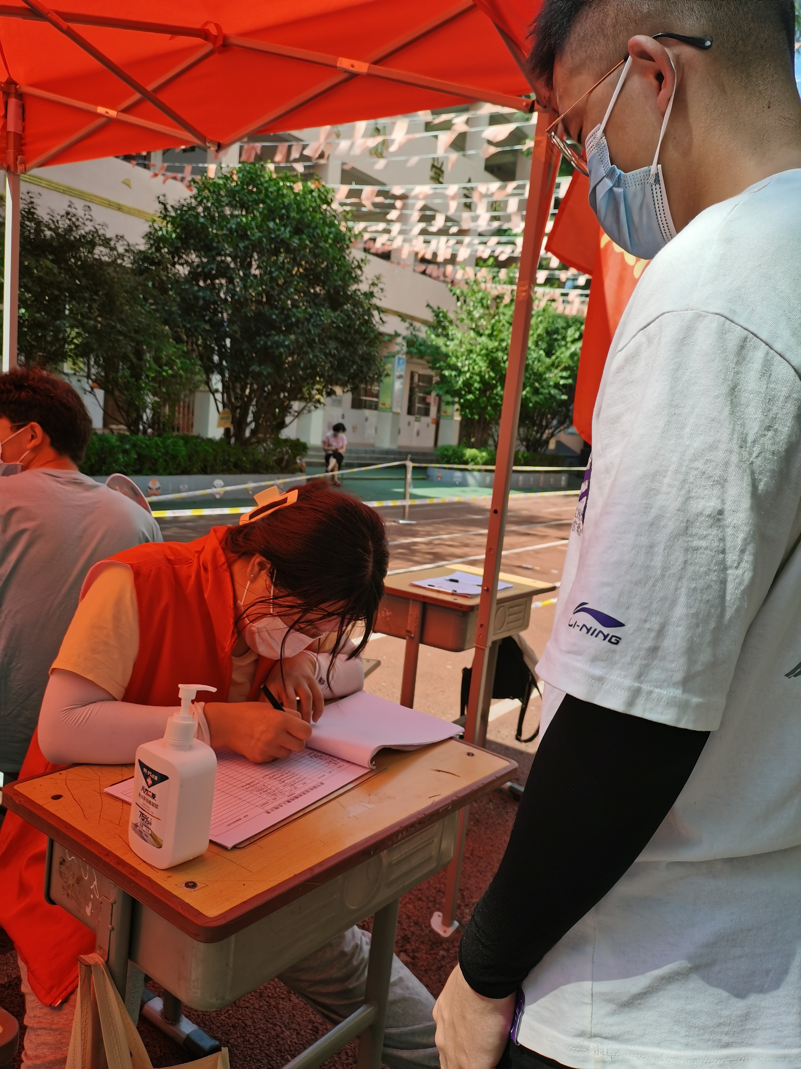 8月7日汛灾刚过疫情又卷土重来,实践团成员王宁决定投身一线,积极参与到疫情防控志愿活动中去。在第一次核酸检测中,实践队员王宁积极帮助群众进行扫码注册登记,并维持队伍秩序,确保核酸检测工作顺利进行。在第二次核酸检测中她协助社区工作人员进行场地布置并穿上厚重的防护服进行信息采集工作。王宁不畏艰险,迎难而上,用实际行动书写了当代青年的“硬核”担当。