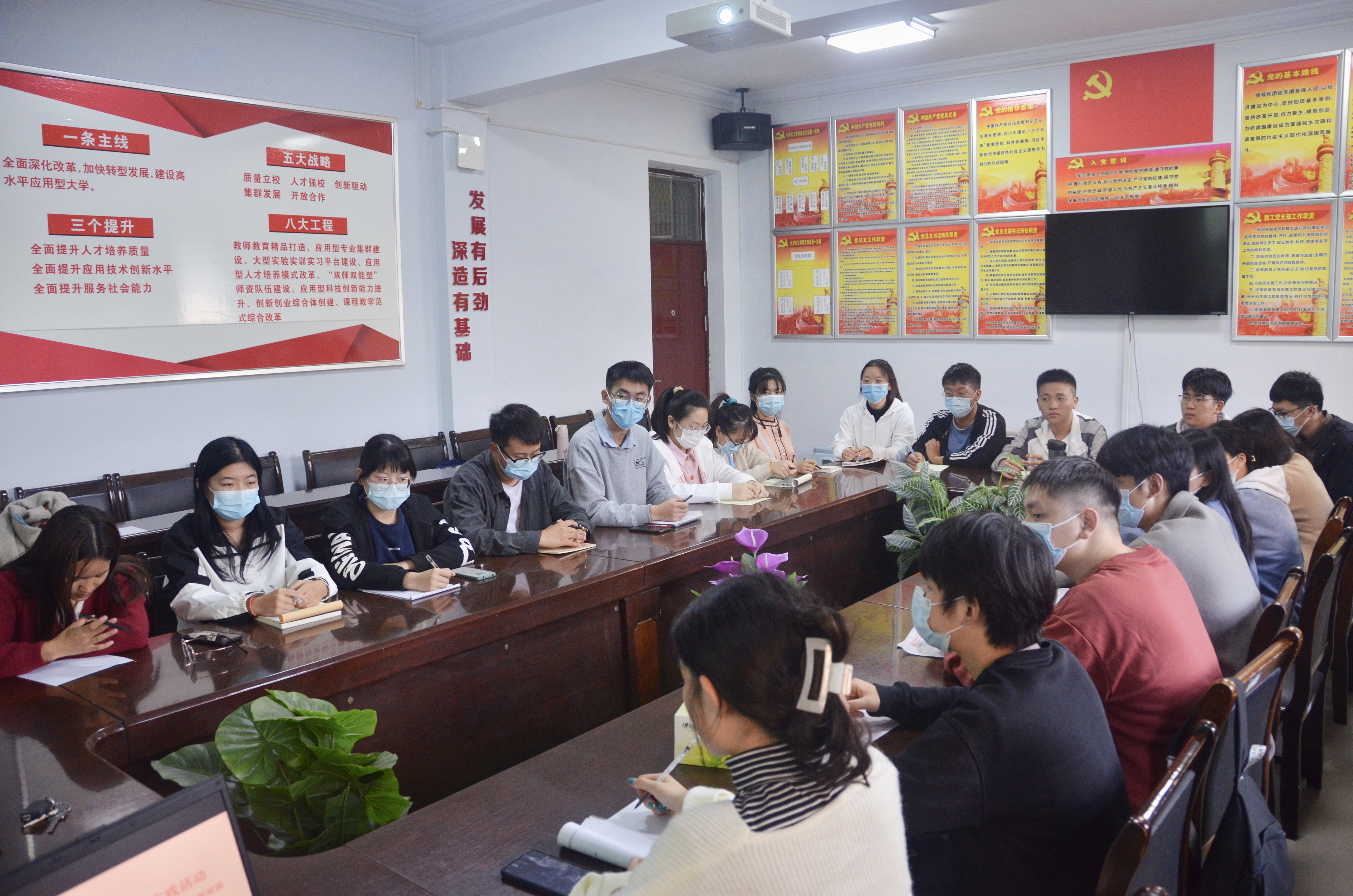 为号召广大师生学党史、悟思想、办实事、开新局,将党史学习教育与服务师生相结合,10月13日下午5点,英国365集团官网于睢阳校区七号楼会议室召开“我为师生办实事”实践活动。党委副书记张颜梅主持,学工办副主任史展、辅导员李宁娅以及19级、20级班委参加。