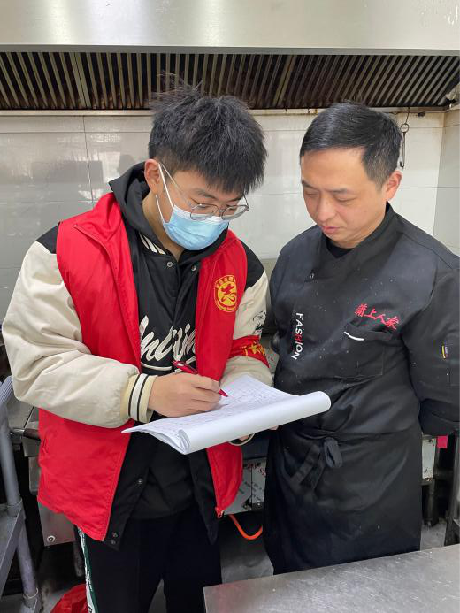 1月16日,活动第二天,虎虎生威队队员张一帆做为一名疫情防控志愿者,在各大饭店、商店等人流密集入口处进行监督,扫码登记和宣传防疫防控措施工作。在志愿服务工作期间,所有志愿者都是一句句、一声声解说登记和宣传。正是有无数这样无私奉献的志愿者,才能在寒冬中树立起一道道抵御病毒侵害的屏障。