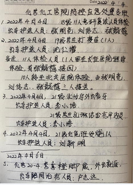 2022年4月4日 2021级化免班员工发烧,刘新明专车护送至北关医院看病。