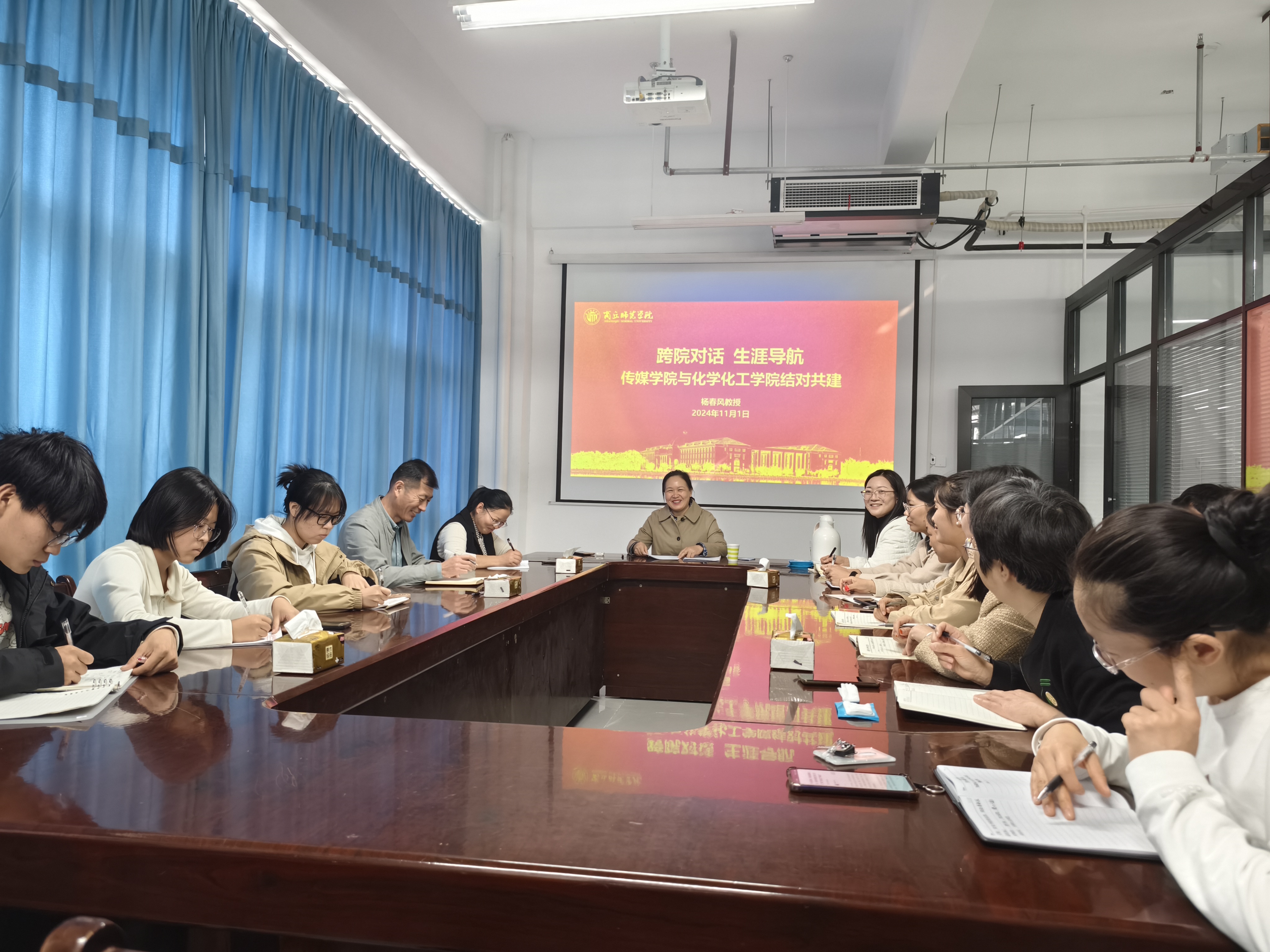 为加强公司之间的交流与合作,11月1日,传媒公司与英国365集团官网于工科实训楼B308会议室开展以“跨院对话,生涯导航”为主题的讲座,主讲人为传媒公司经理杨春风,公司领导班子、辅导员、教学办全体成员参加。