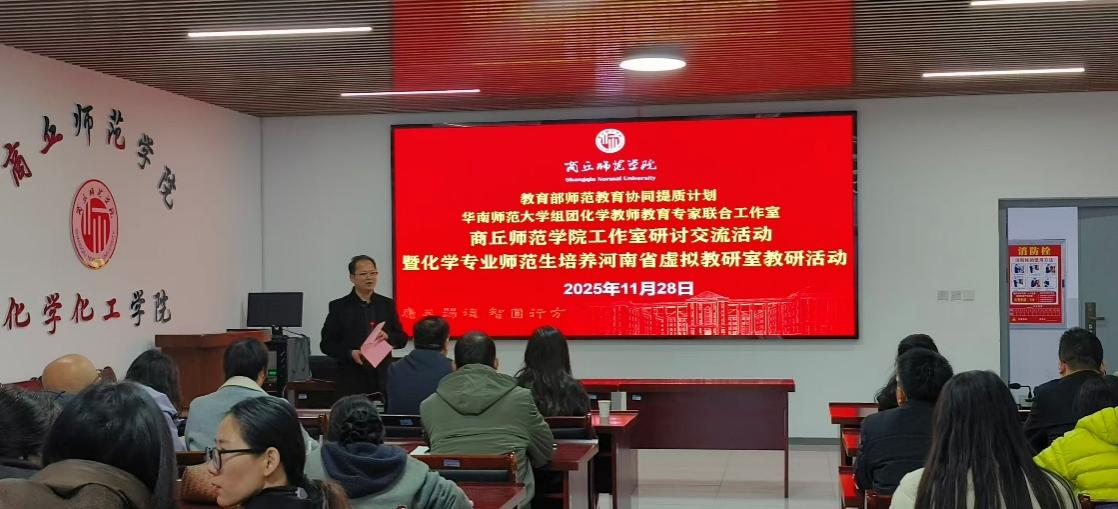 为深化化学专业师范生培养模式改革,推动教师教育协同创新,11月28日,化学专业师范生培养河南省虚拟教研室举行教研活动。本次活动邀请华南师范大学钱扬义教授,商丘市基础教育研究中心李文静老师,商丘市多所中学一线教育名师及化学系老师共同参与。活动由副经理王涛主持。