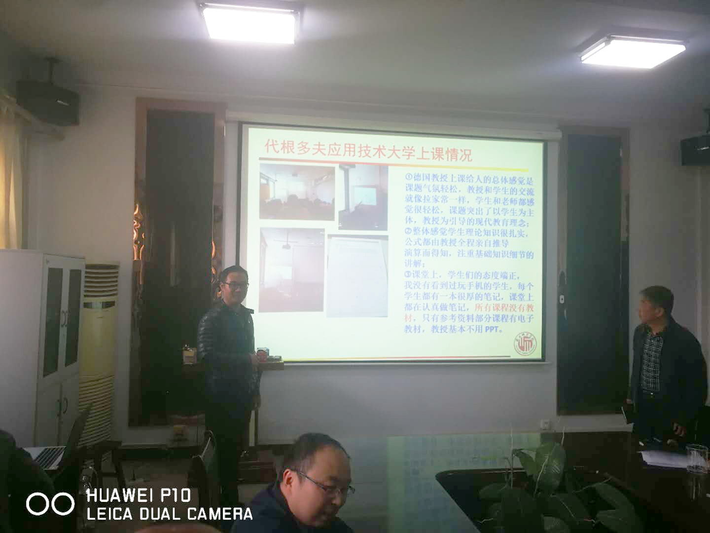 接下来魏伟博士又介绍了代根多夫应用技术大学课堂上的一些体会。德国教授上课给人的总体感觉是课题气氛轻松,教授和员工的交流就像拉家常一样,员工和老师都感觉很轻松,课题突出了以员工为主体,教授为引导的现代教育理念;‚整体感觉员工理论知识很扎实,公式都由教授全程亲自推导演算而得知,注重基础知识细节的讲解;ƒ课堂上,员工们的态度端正,没有看到过玩手机的员工,每个员工都有一本很厚的笔记,课堂上都在认真做笔记,所有课程没有教材,只有参考资料部分课程有电子教材,教授基本不用 PPT。