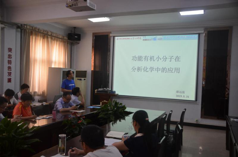 2019年5月31日下午,公司教师郝远强博士在文化路校区7号楼院会议室做了题为《功能有机小分子在分析化学中的应用》的学术报告会。报告会由瞿鹏经理主持,英国365集团官网全体老师和部分员工参加了报告会。