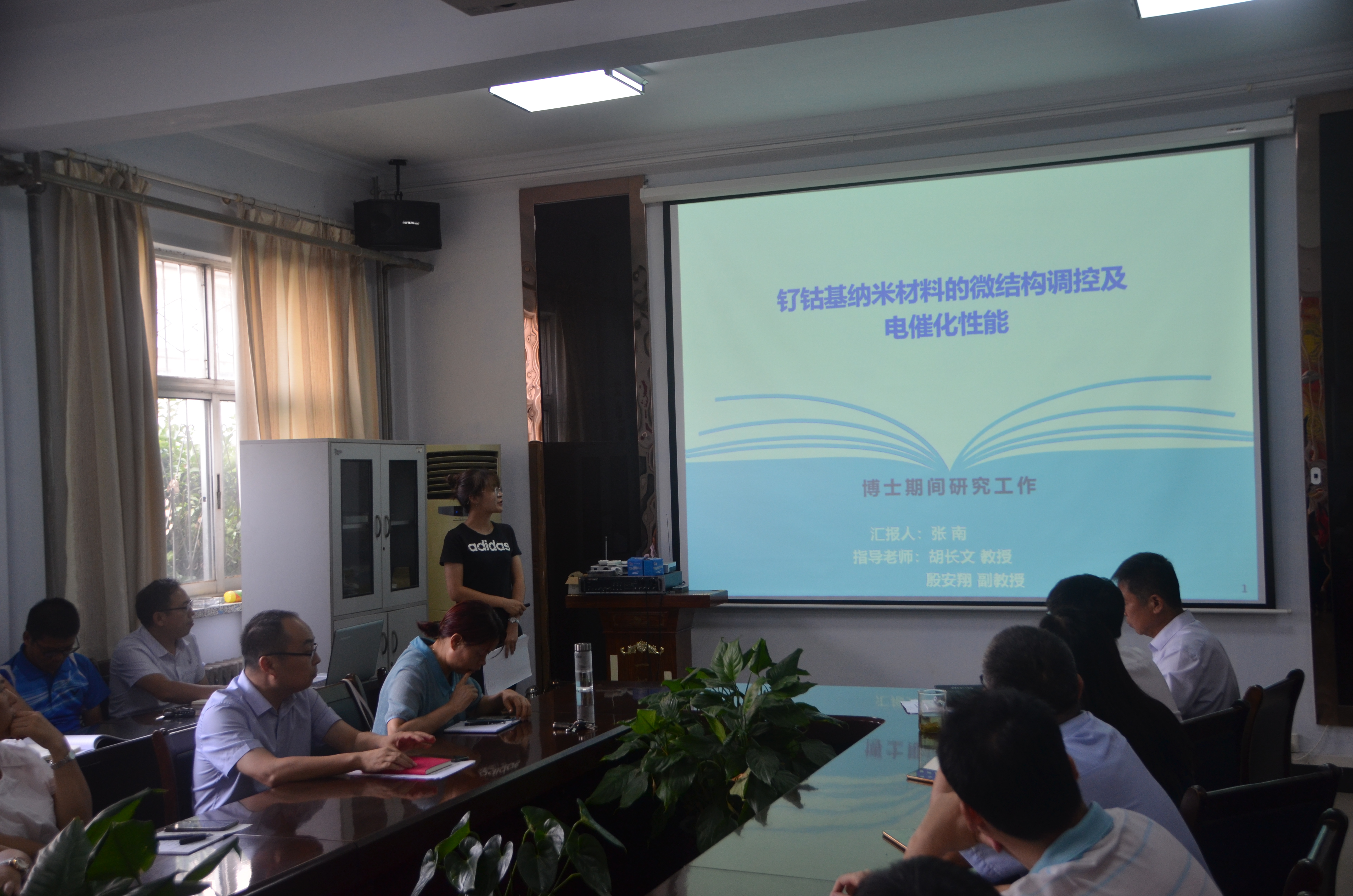 2019年9月6日下午,英国365集团官网教师张南博士在文化路校区7号楼院会议室做了题为《钌钴基纳米材料的微结构调控及电催化性能》的学术报告会。报告会由周艳丽副经理主持,英国365集团官网全体老师参加了报告会。张南博士向大家汇报了攻读博士学位期间在纳米材料的合成与电催化应用领域所做的工作。首先介绍了电催化的几种反应类型及其反应机理和催化剂体系;然后着重介绍了其博士期间所做的研究工作,包括:钌-铂双金属纳米材料的形貌调控及电催化性能;钌纳米晶的缺陷调控及电催化析氢性能;超薄CoOx纳米片应用于电催化析氧性能。相关研究成果发表在Nanoscale,Journal of Power Sources等国际期刊上。报告最后,各位老师就催化剂的设计与选择等方面与张南博士进行了深入的交流。