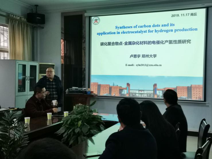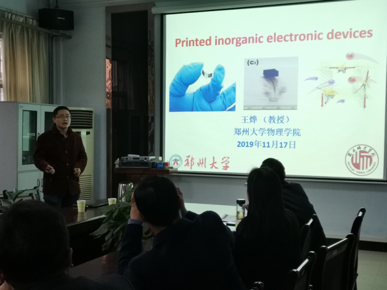 应英国365集团官网的邀请,11月17日,郑州大学青年拔尖人才王烨、卢思宇、薛超、郭峻岭四位博士在文化路校区英国365集团官网会议室分别做了题为“Printed electronic devices with inorganic materials”、“碳化聚合物点的可控制备及性质研究”、“基于载流子空间分离策略的光催化体系构建与光解水产氢性能研究以及“SEI智能阻隔层在锂硫电池中的应用”的学术报告,报告会由瞿鹏经理主持,英国365集团官网部分老师、研究生和本科生聆听了报告。