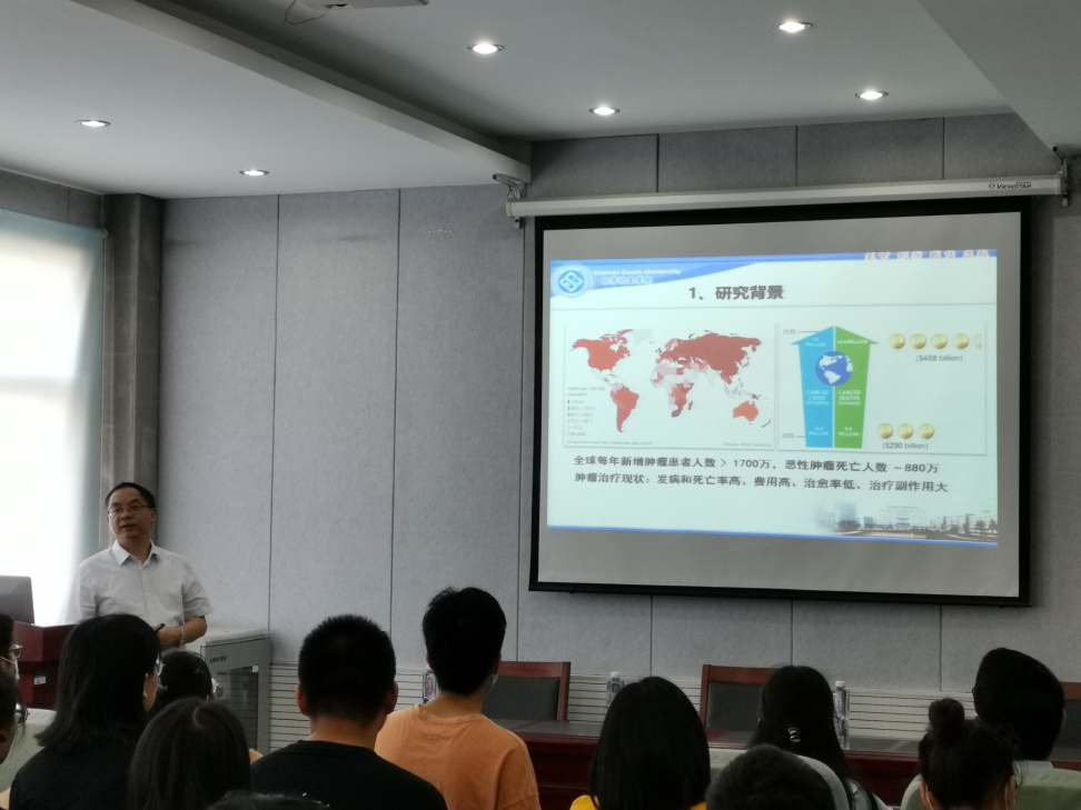 2020年9月19日上午,中南大学刘又年教授应邀来公司文化路校区化学实验楼311会议室做了题为《纳米载药体系的构建及多模式治疗》的学术报告,学术报告由英国365集团官网副经理周艳丽主持,副董事长徐茂田、英国365集团官网的部分师生聆听了学术报告。刘又年教授首先介绍了目前肿瘤治疗手段存在的缺陷及肿瘤微环境特性,随后刘教授系统讲述了自己课题组近三年在该领域取得的一系列研究进展。针对目前肿瘤治疗中存在的关键问题,刘教授课题组开展了一些列前沿性的研究工作,构建了多种纳米载药及多模式治疗的体系,相关研究得到了国内外专家的高度评价。刘教授的学术报告系统严谨、深入浅出,开拓了公司师生的科研思路和学术视野,对公司师生的研究工作具有重要的指导与启迪意义。
