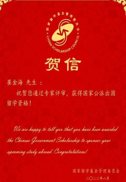 近日,国家留学基金委(CSC)公布了2022年国家留学基金委河南省地方合作项目,公司常竹、崔金海和杜兵兵三位博士获得国家公派访问资助。获批后,三人将赴新西兰奥克兰大学聚合物生物界面中心进行为期12个月的访学。