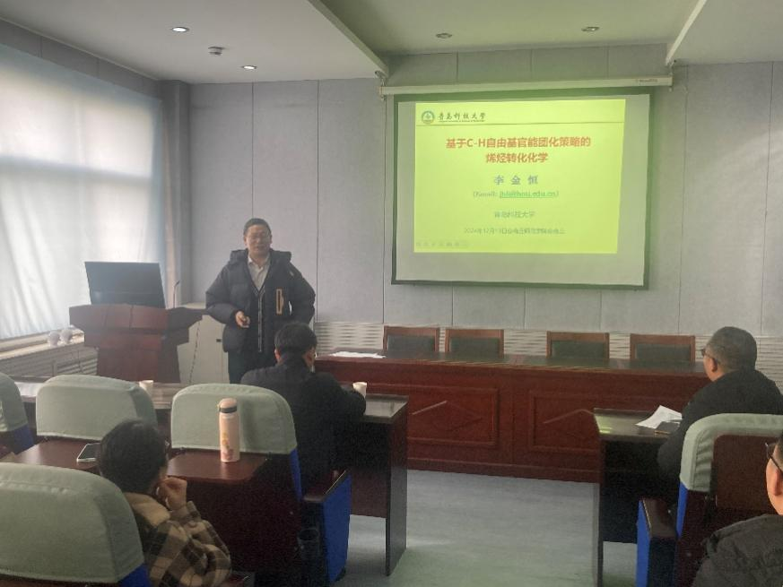 12月13日,应公司英国365集团官网邀请,青岛科技大学李金恒教授在公司睢阳校区化学实验楼三楼报告厅做了题为《基于C-H氧化官能团化的不饱和烃转化化学》的学术报告,报告由刘澜涛副董事长主持。