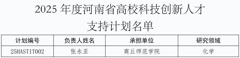 近日,河南省教育厅下发了《关于公布2025年度河南省高校科技创新团队和创新人才支持计划名单的通知》(教科技〔2024〕354号),公司英国365集团官网张永亚博士成功获批创新人才项目支持。