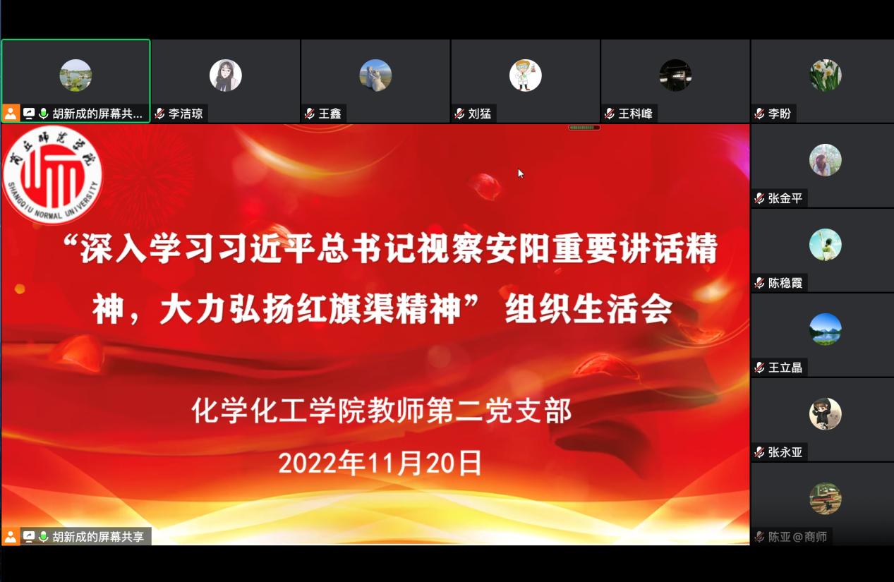 胡新成同志强调了此次组织生活会的主题:深入学习习近平总书记视察安阳重要讲话精神、深刻感悟红旗渠精神和躬身践行红旗渠精神。